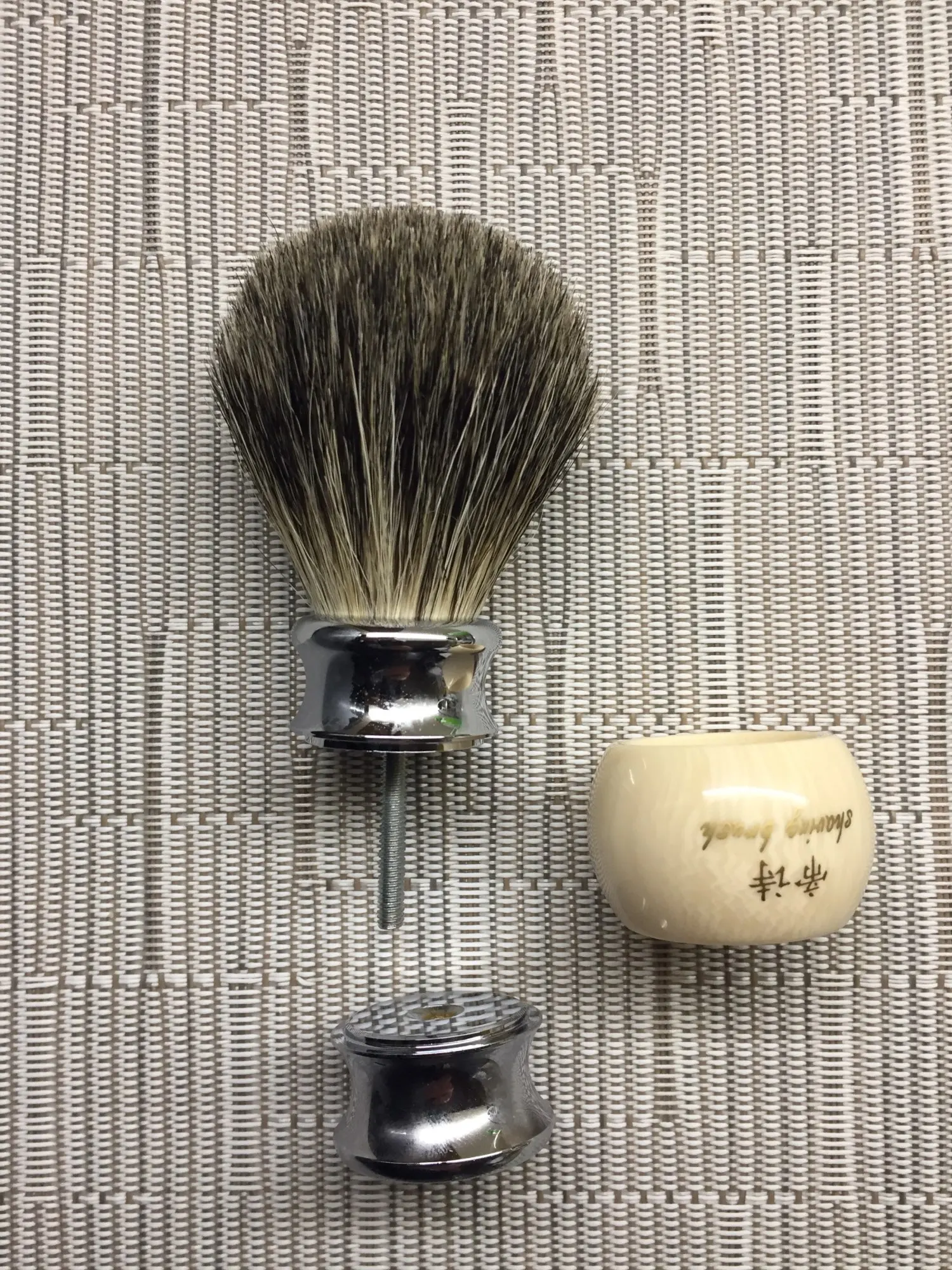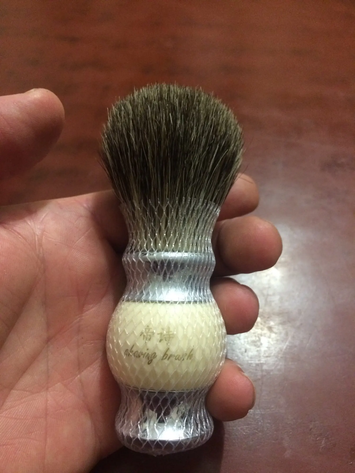 До Воронежа дошло за месяц. Выглядит шикарно. Намокнув первый раз - очень воняло животным. После третьего - уже не заметно. Ворс не теряется .Можно разобрать. Мягче чешского спокара (на фото синий) . Брал чтобы попробовать настоящего барсука. По ощущениям не хватает жесткости, может просто привык к старому помазку.