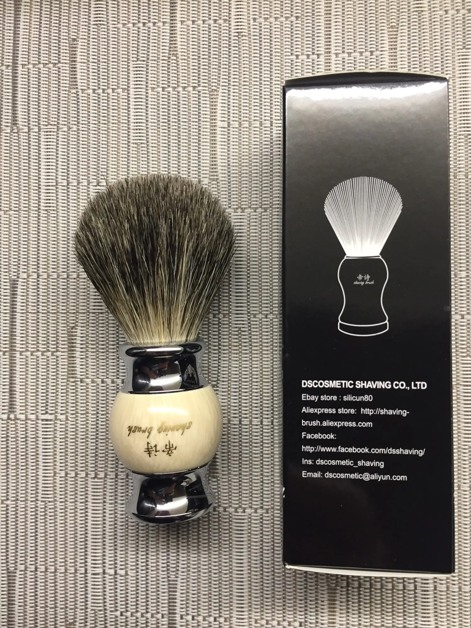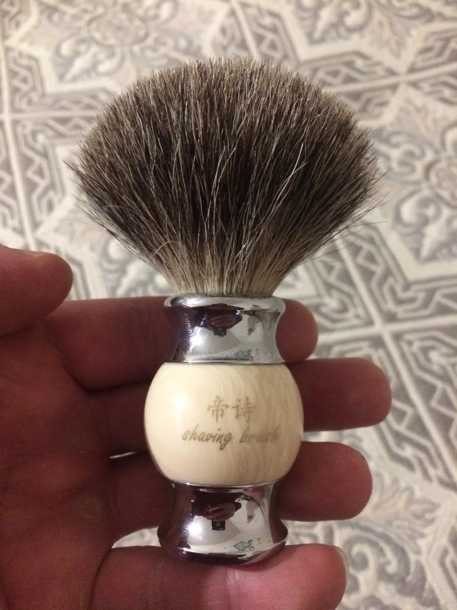 Помазок (Shaving brush) из барсука DsCosmetic прошёл тест на 5. Все познаётся в сравнении. Лет 10-15 пользовался помазком из кабана и скорее всего это была Омега. Реалии превзошли ожидания, может из-за того, что не было у меня никогда помазка из барсука. Тяжело представить, что есть помазки лучше. А они точно есть. К примеру, Серебряный барсук, хорошего известного бренда, типа Muehle. Если Вы как и я не избалованны хорошими помазками, то смело выбирайте этот вариант. Цена-качество здесь в балансе. Подставку заказал также бюджетную на свой страх и риск. Не нашёл фото с размерами и решил исправить эту ситуацию. Может кто-нибудь, скажет мне спасибо за эти фото. Последнее фото - это помазок после предварительного отмачивания и купания в шампуни и конечно, после первой эксплуатации. Доставка была из России и доставил курьер на 4-й день. Рекомендую продавца и товар.