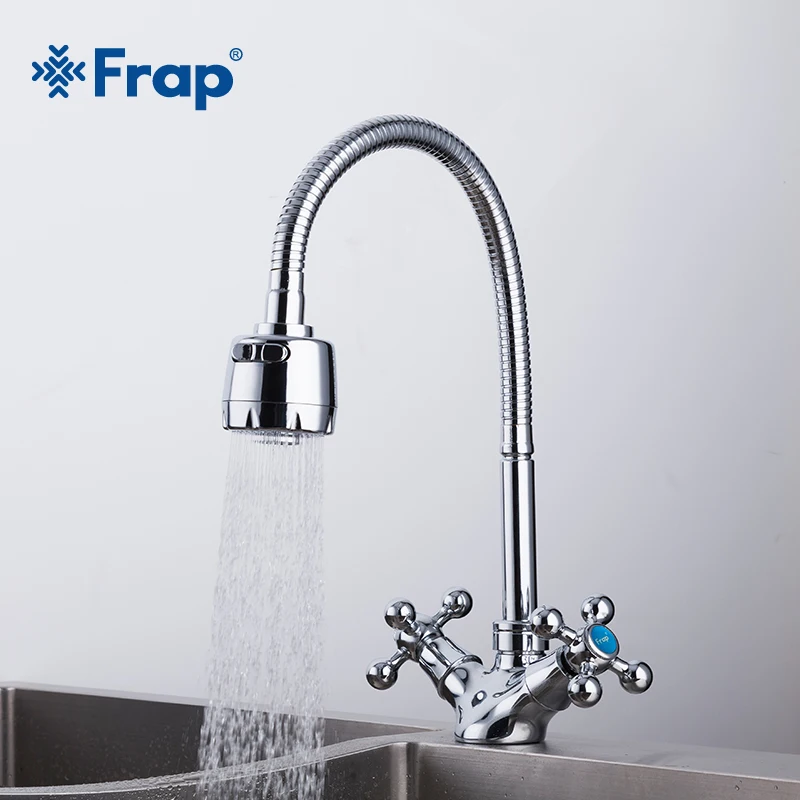 FRAP Серебряный смеситель для кухонной раковины с двойной ручкой смеситель для холодной и горячей кухни Смеситель для воды с одним отверстием torneira cozinha F4319