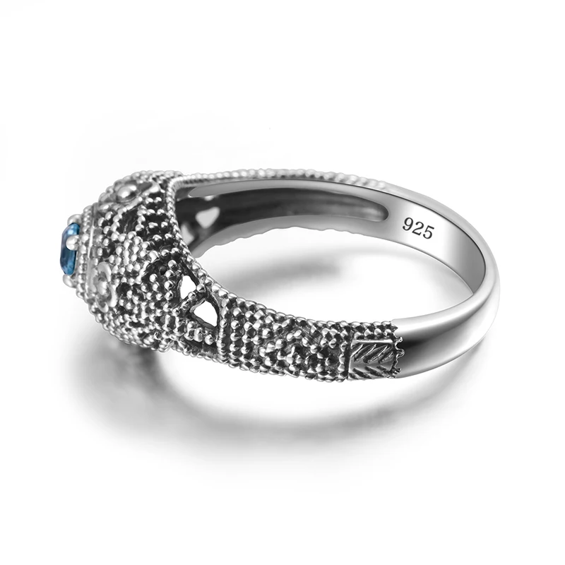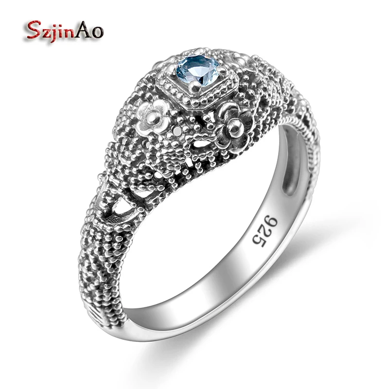 Szjinao Принцесса Синий австрийский Аквамарин Спартан Цветок Любовь кольцо чистое серебро 925 пробы винтажные Свадебные украшения для женщин OL