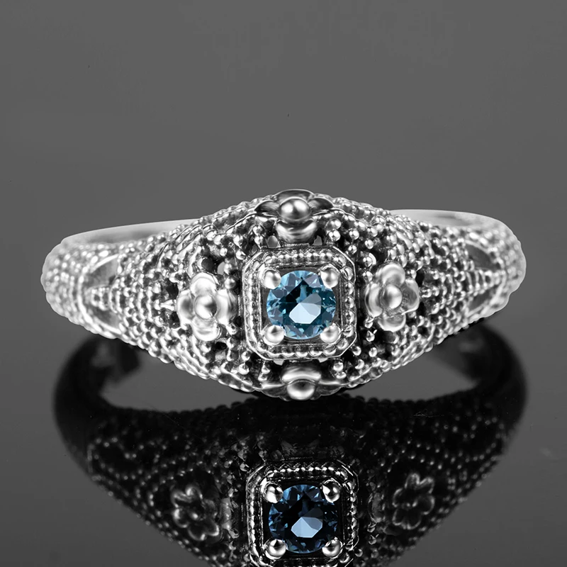 Женское кольцо из серебра 925 пробы, с голубым аквамарином, спартанским цветком