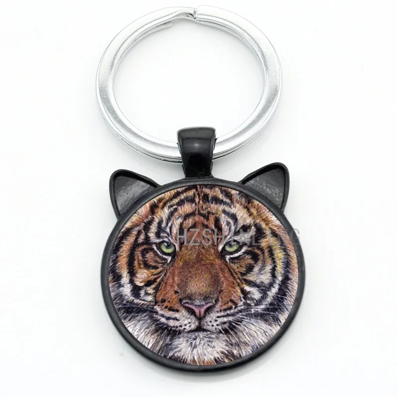 2016 Горячая Распродажа дикое животное, тигр брелок кольцо для ключей защита сохранение дикой природы Тигр стекло сплав подвеска брелок для мужчин и женщин ювелирные изделия CN262 Изображение продукта: