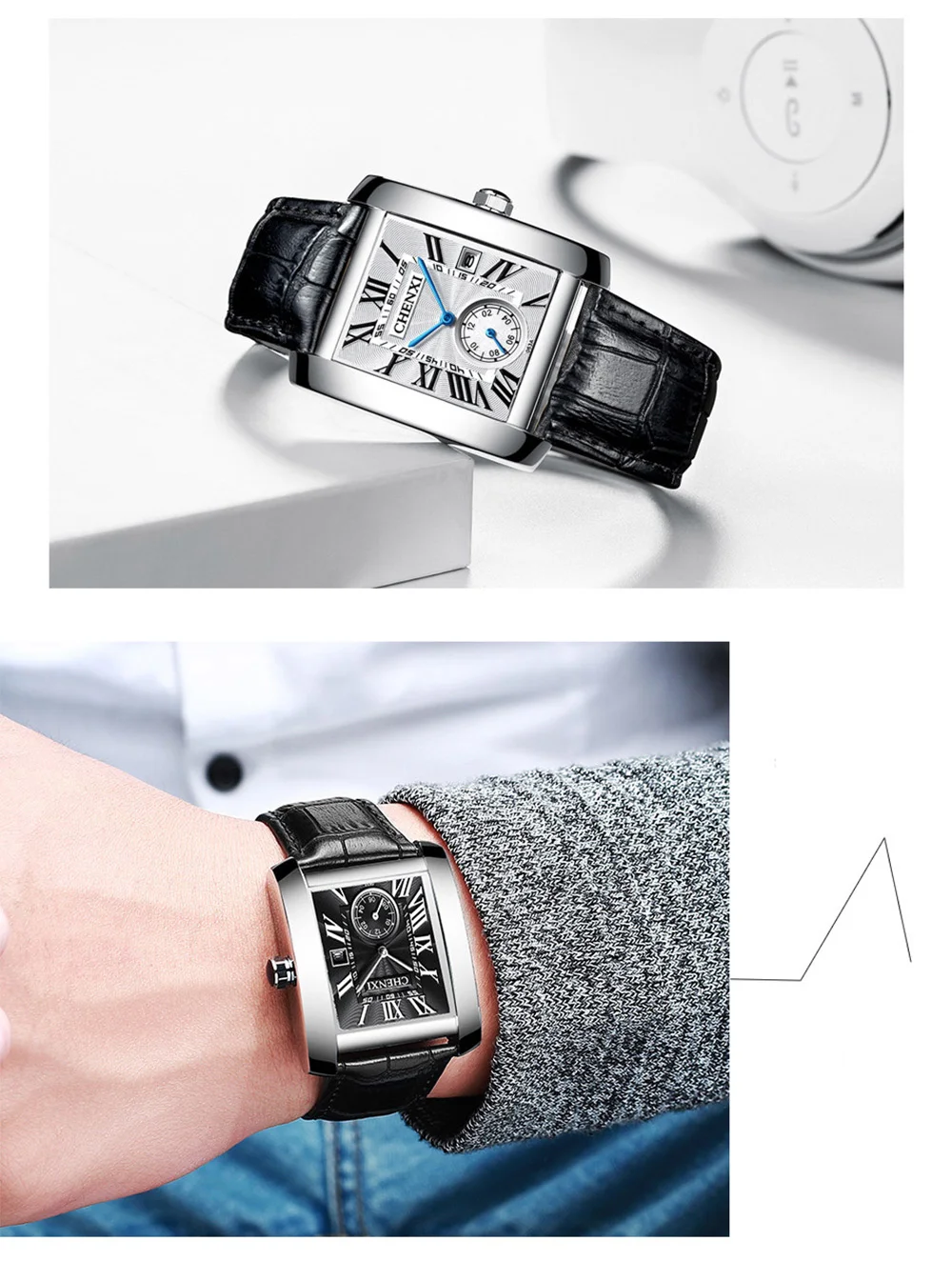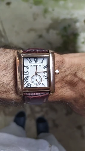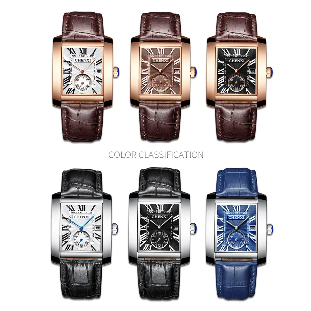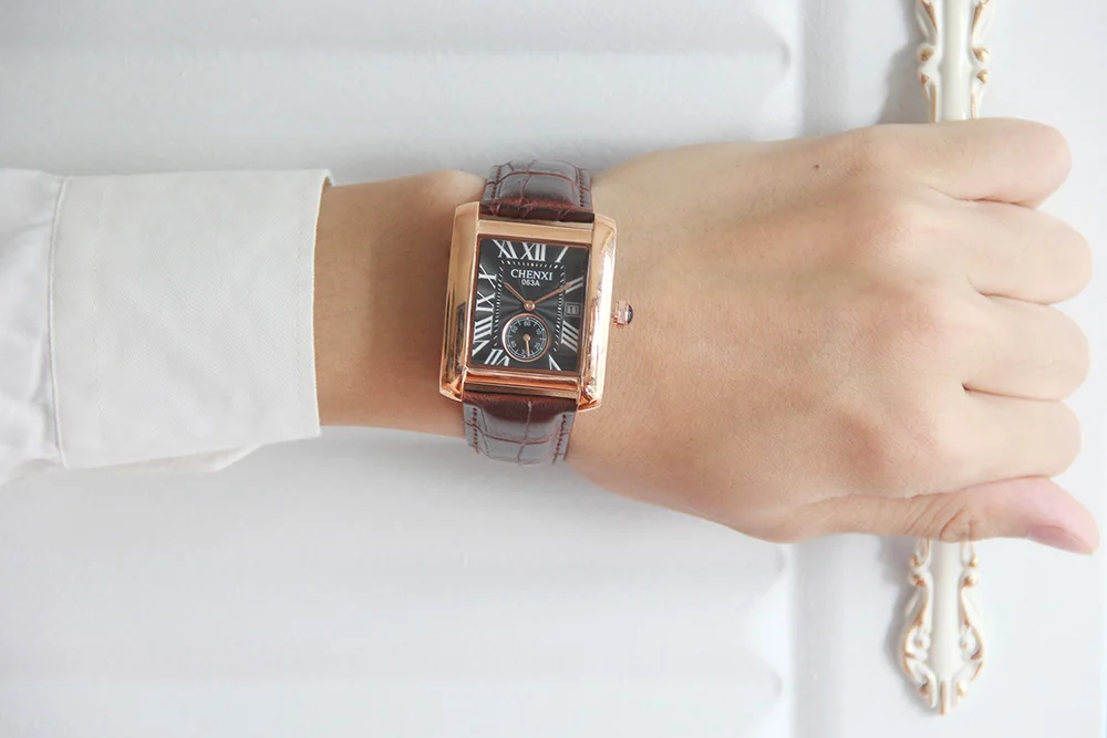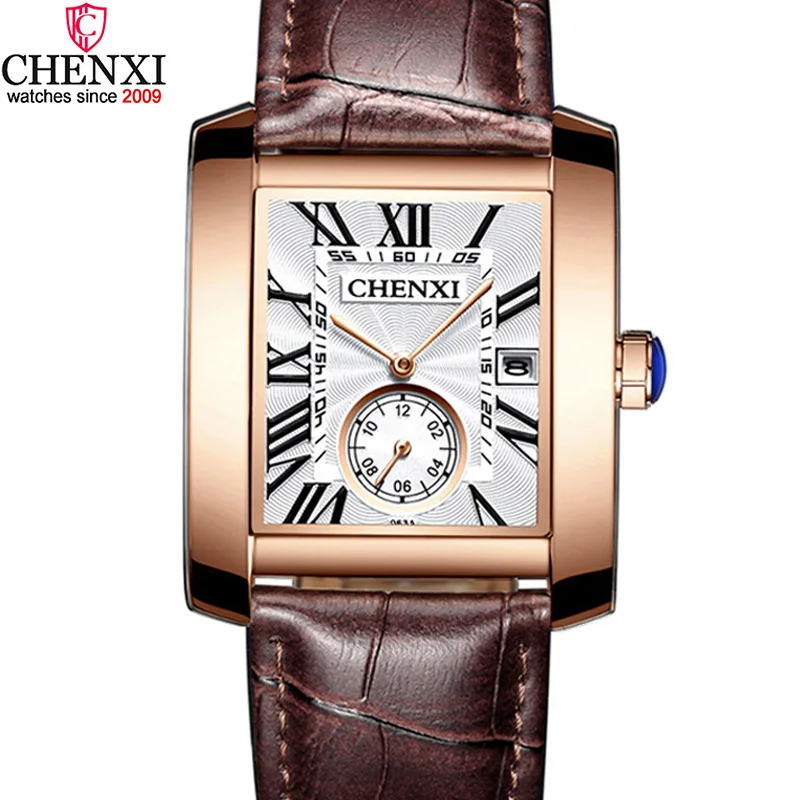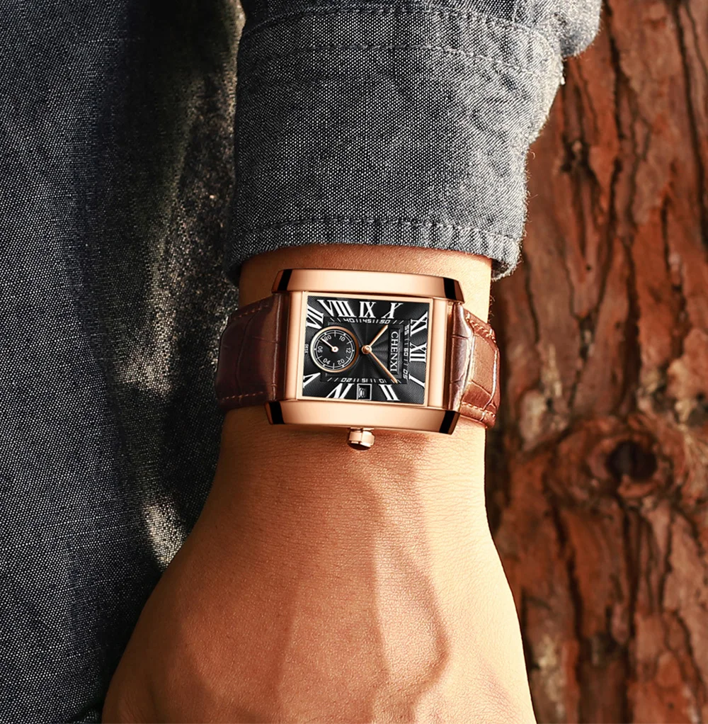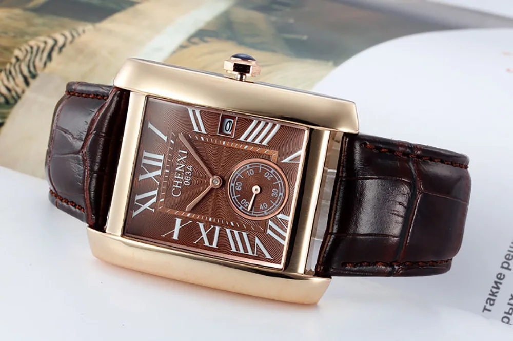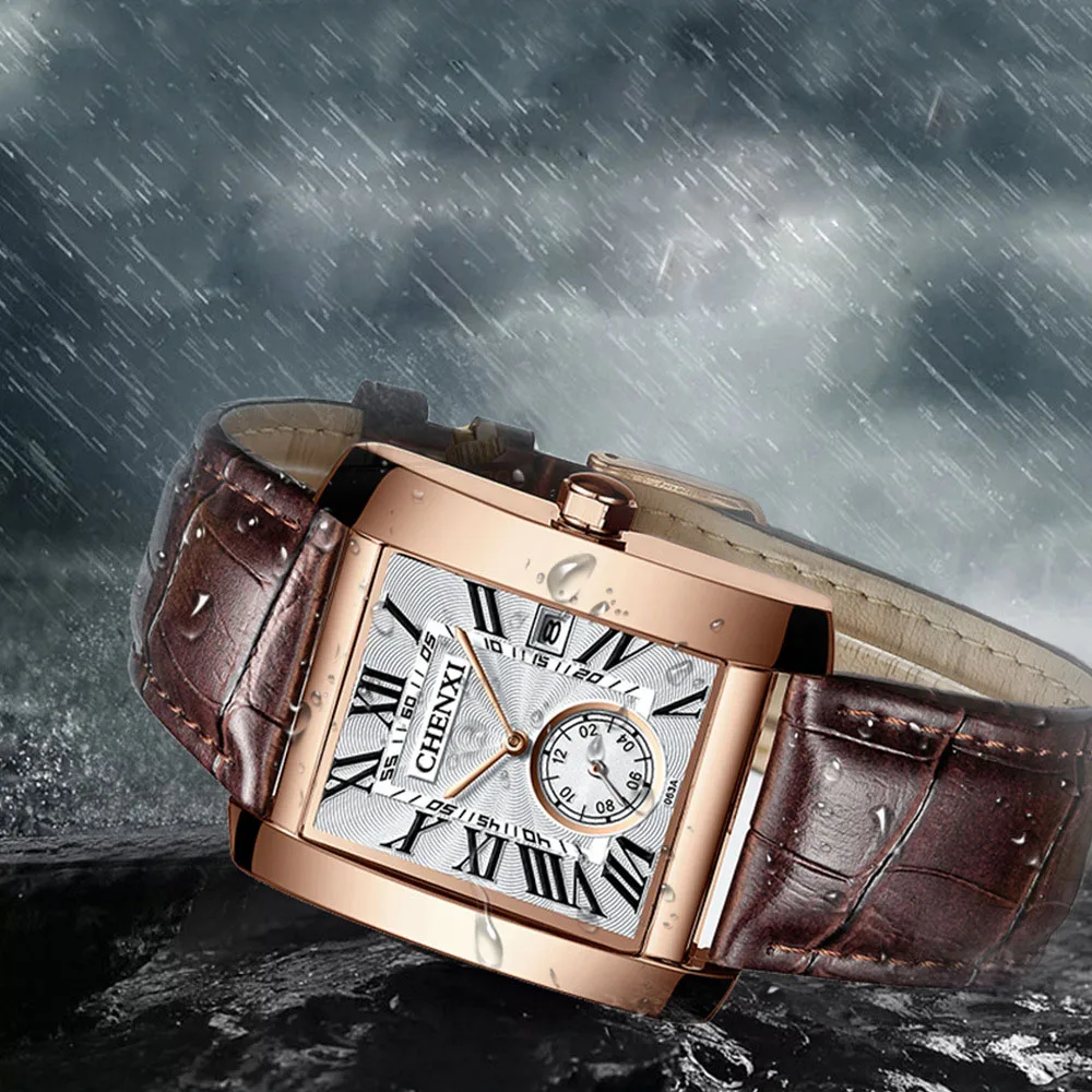 Мужские кварцевые часы с календарём, из натуральной кожи