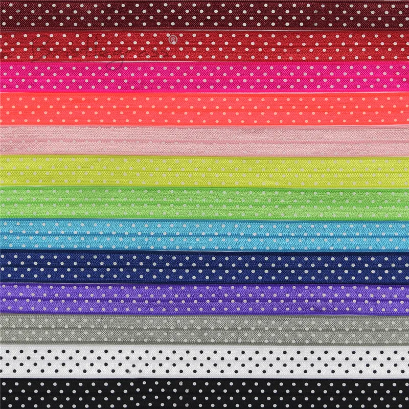 Блестящая трава, 5 ярдов 5/8 "15 мм, узор в горошек, FOE Fold Over Elastics, спандекс, атласная лента, повязка на голову, повязка на голову, платье-пачка, швейная отделка