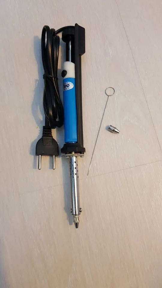 Удобно держать в руке. Но хз как пользоваться. Оловоотсос не разобрать (или я тупой и не могу найти как он разбирается). Корпус пластиковый, поэтому через какое то время может подплавиться. Приходится откручивать насадку и ковырять этой ерундой типа шомпола, чтобы добыть припой. Жало нельзя поменять на какое-нибудь другое. Есть только 2 насадки с отверстием для оловоотсоса, разного диаметра. Температура не регулируется. Не советую к покупке.