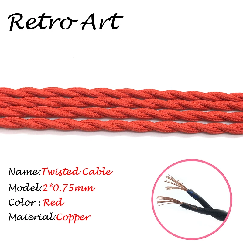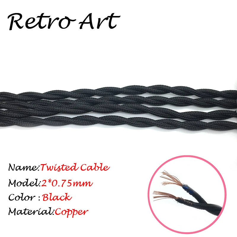 2*0,75 мм винтажный кабель скрученный Плетеный, тканевый шнур для лампы в античном стиле