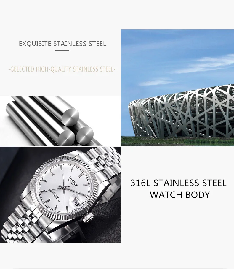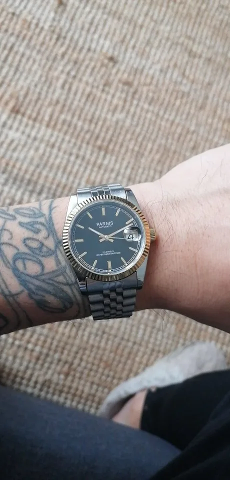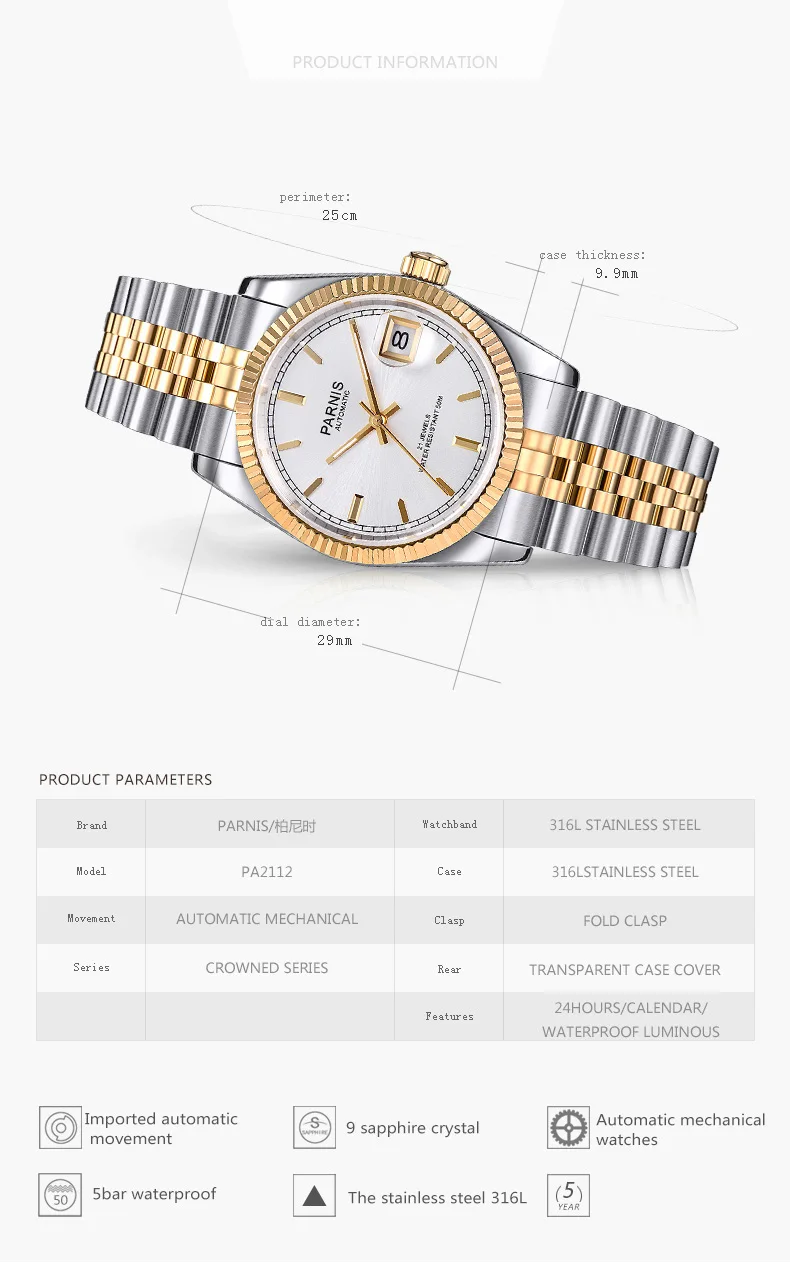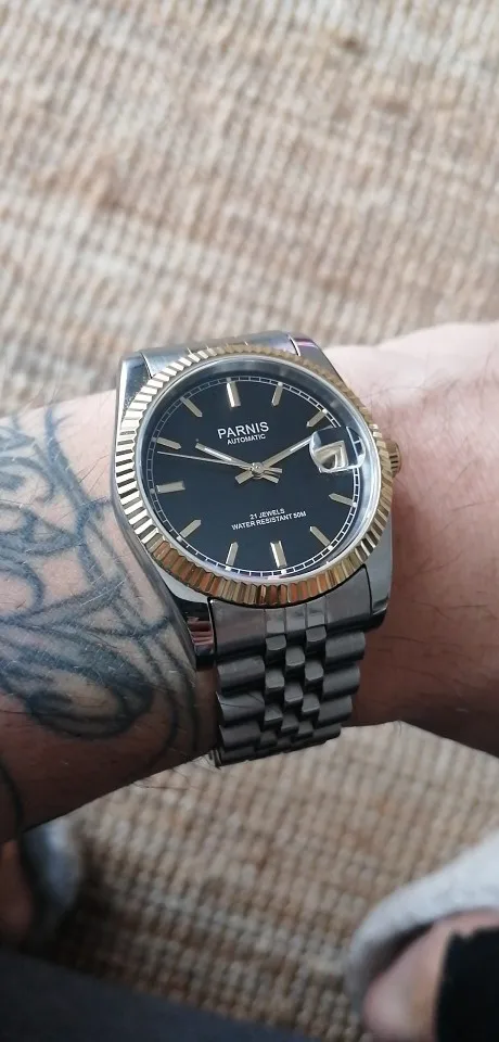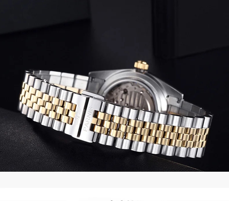 Мужские автоматические часы Parnis, 36 мм, Miyota 821A 6T51, роскошные 5ATM Золотыечерныесеребряные часы, унисекс, сапфировое стекло, дата, Юбилейный браслет