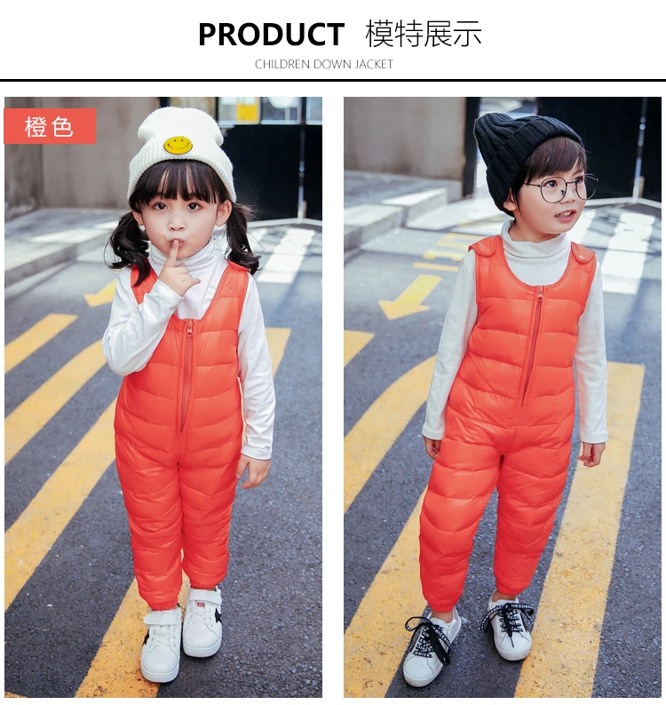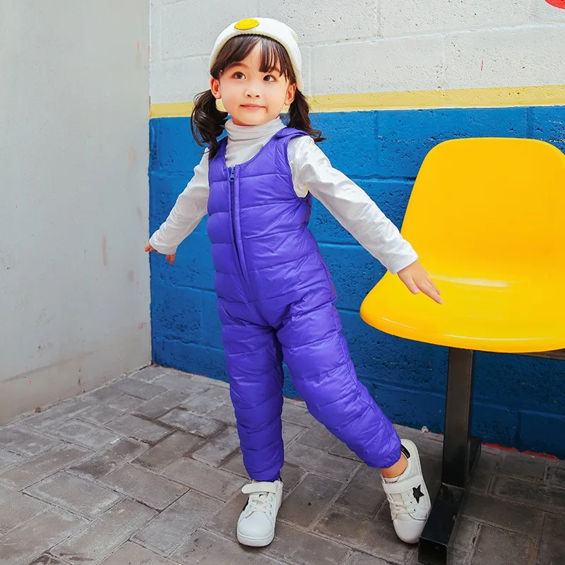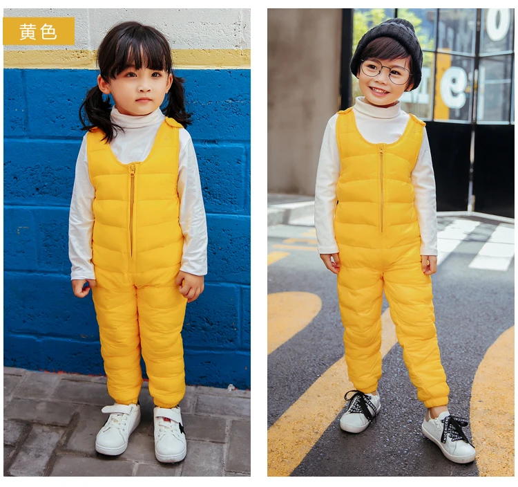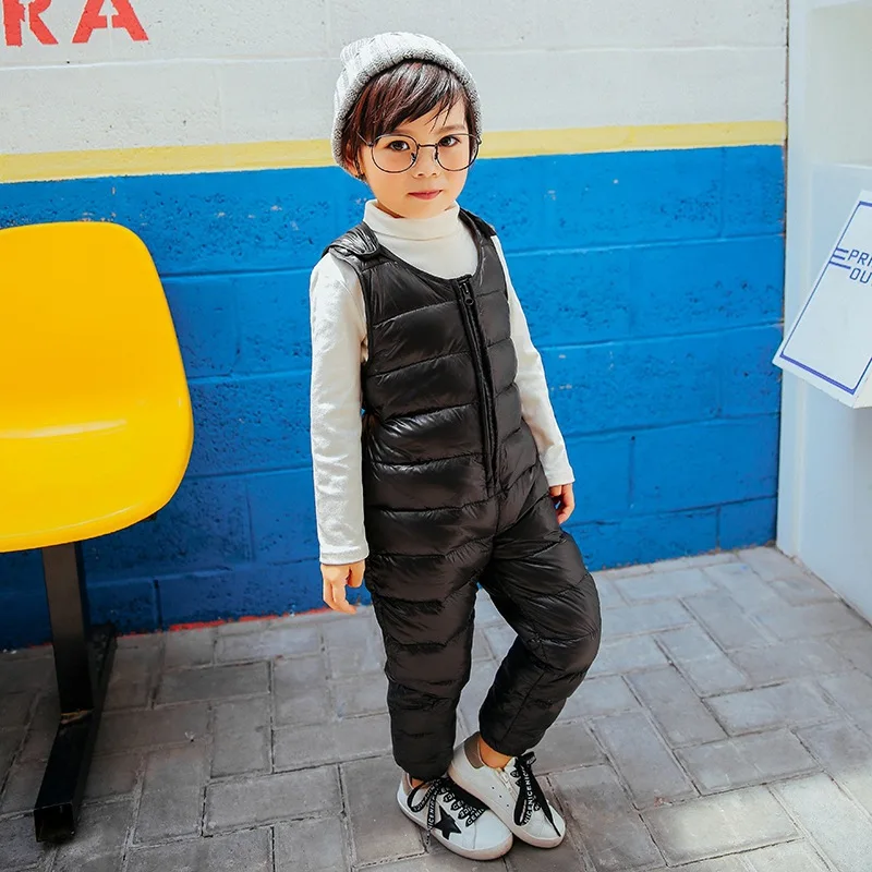 Детский пуховик, штаны для маленьких мальчиков, зимние детские брюки с ремнем для девочек, Толстый жилет на пуху, ветрозащитный