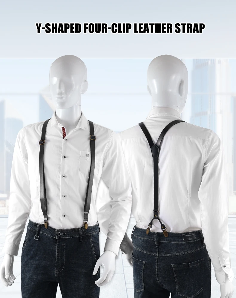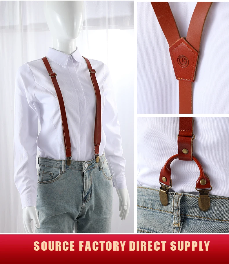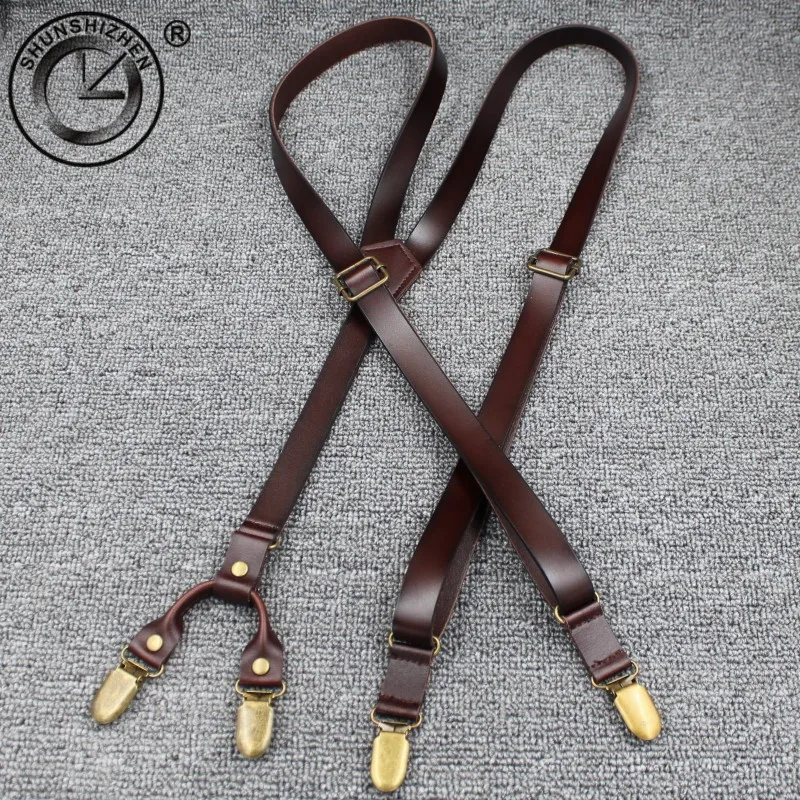 1,7 см модные кожаные 4 клипсы подтяжки коммерческий Западный стиль брюки мужские подтяжки