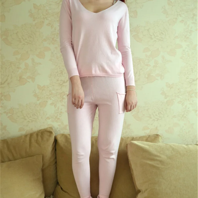 Женский трикотажный костюм Rugod, Однотонный свитер с V-образным вы...