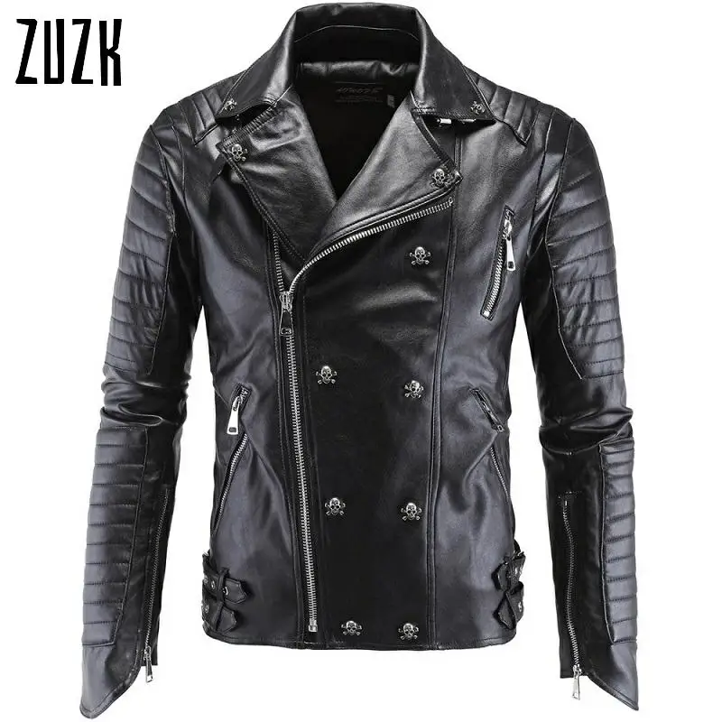 Мужские зимние куртки из искусственной кожи, куртка в корейском стиле, приталенные мужские пальто, байкерская мужская замшевая куртка с черепом