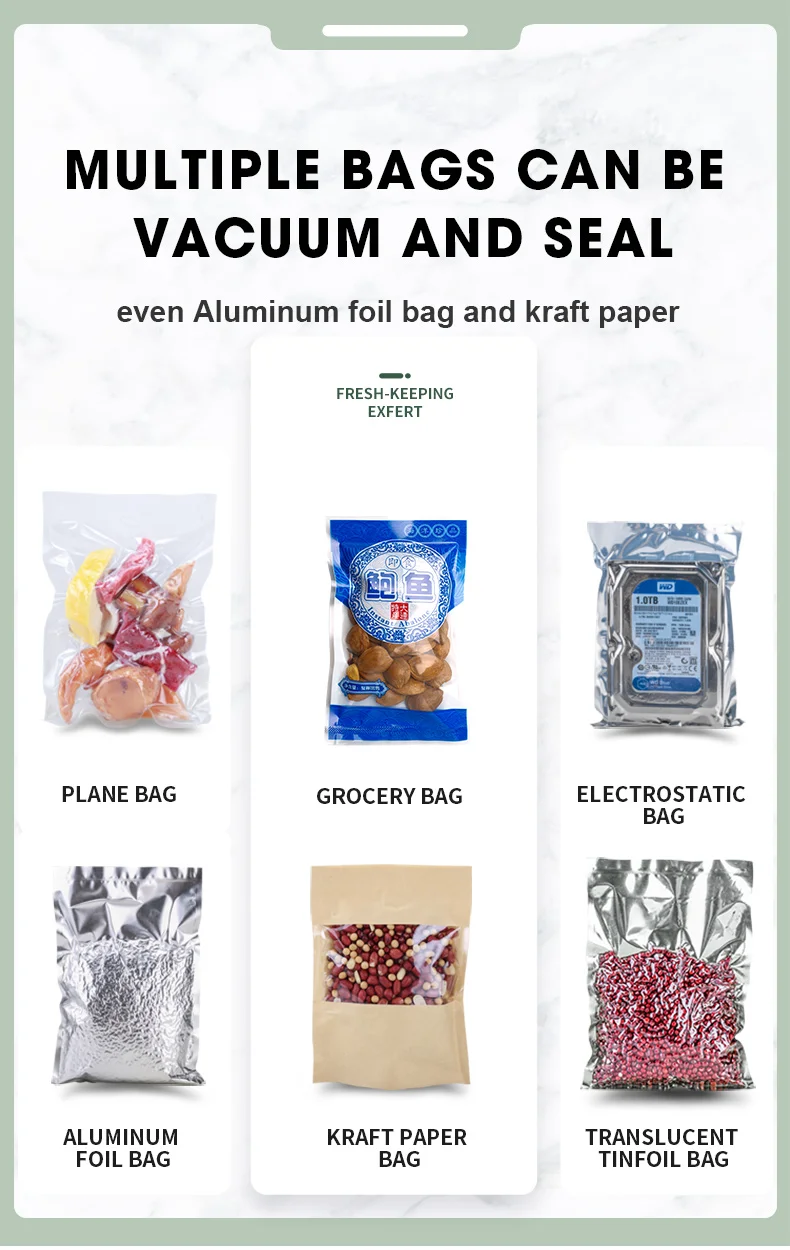 Восхитительный полезный вакуумный упаковщик. Я пользовался им несколько дней, и он работает очень хорошо. Очень сложно получить этот тип вакуумного упаковщика, который может вакуумировать все пакеты. Настоятельно рекомендую всем использовать его.