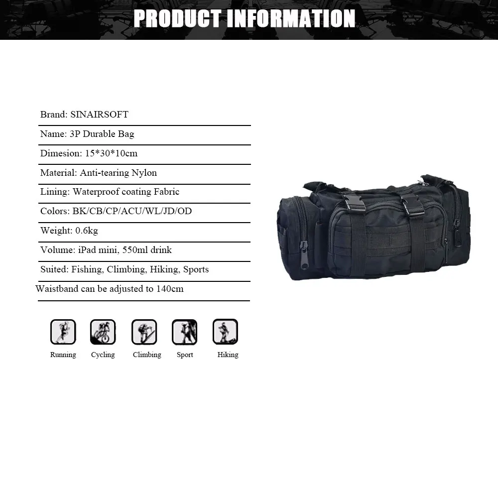 Поясная Сумка SINAIRSOFT для военный тактический рюкзак для наружного использования, рюкзак для кемпинга, походов, нагрудной мешок 3P