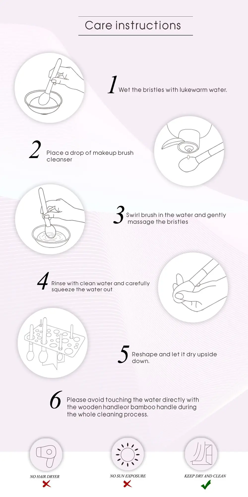 3. Не кладите щетку в воду, чтобы не повредить щетку.