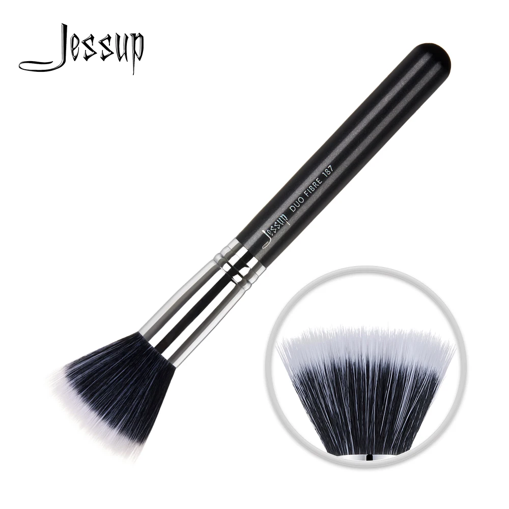 Jessup, одна Кисть для макияжа, из двойного волокна, высокое качество, профессиональная волоконная кисть для волос, для лица, перламутровая черная, 1 шт., 187