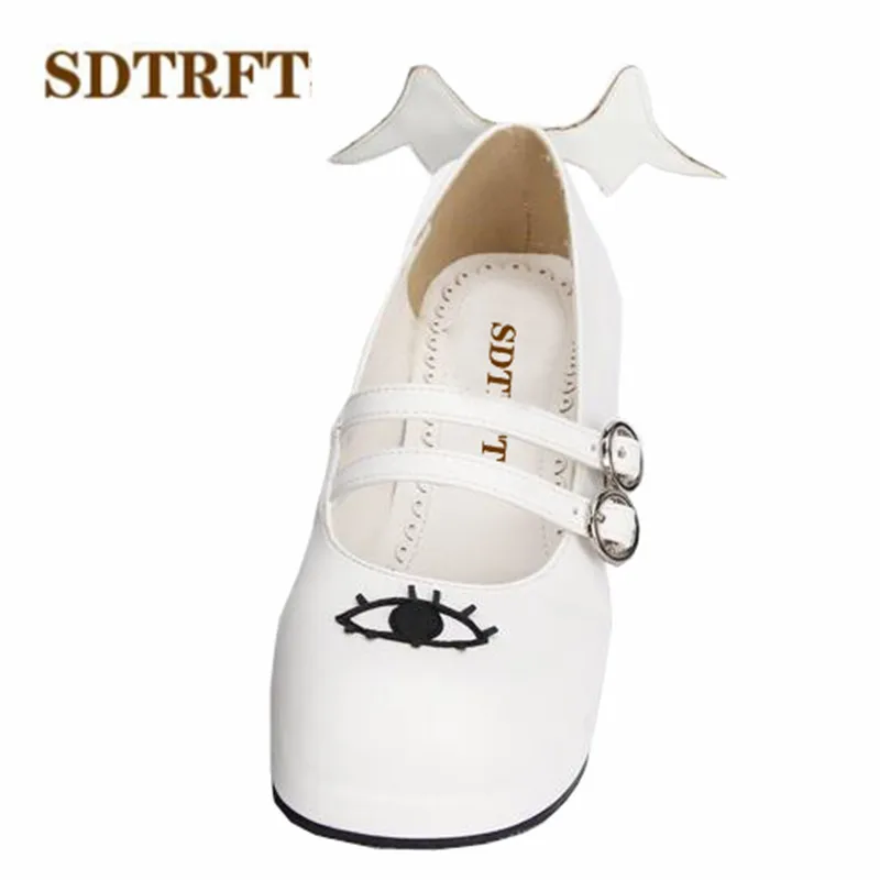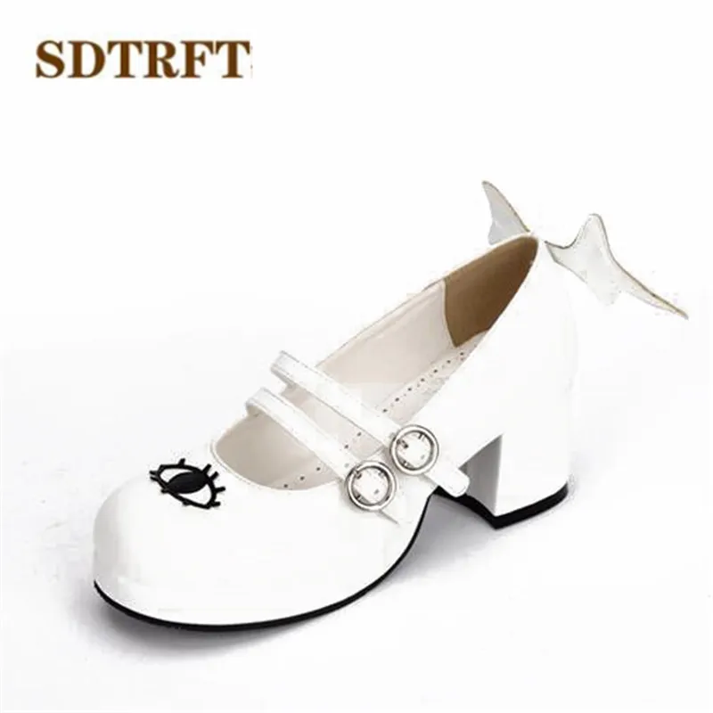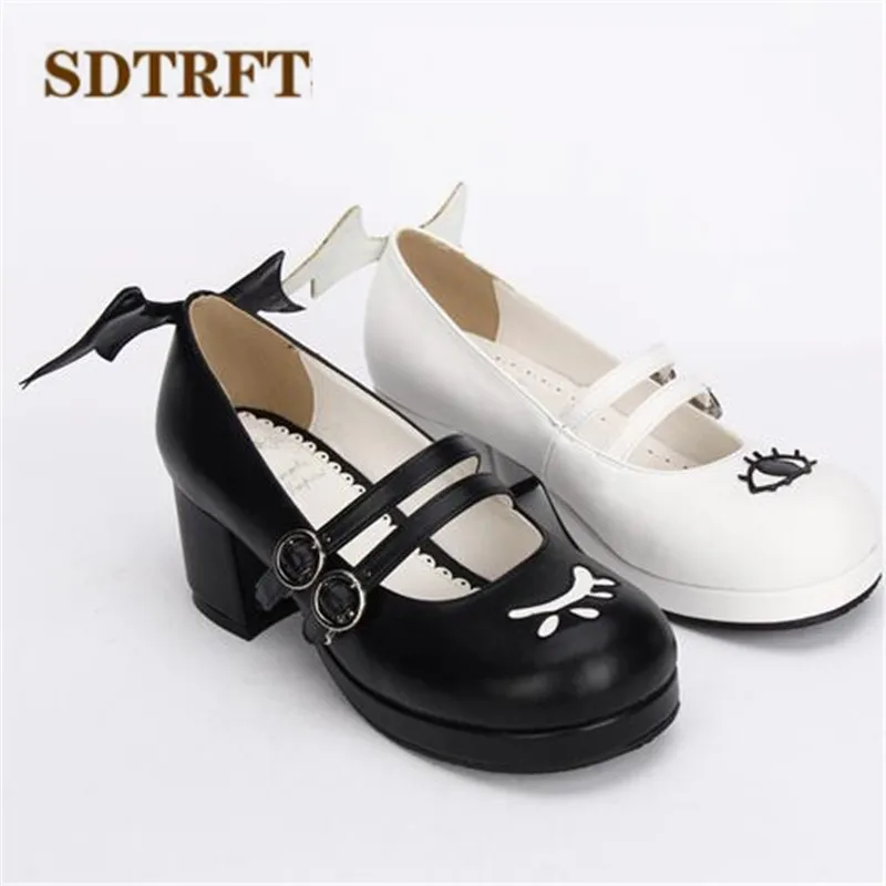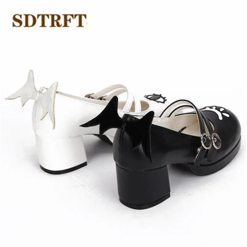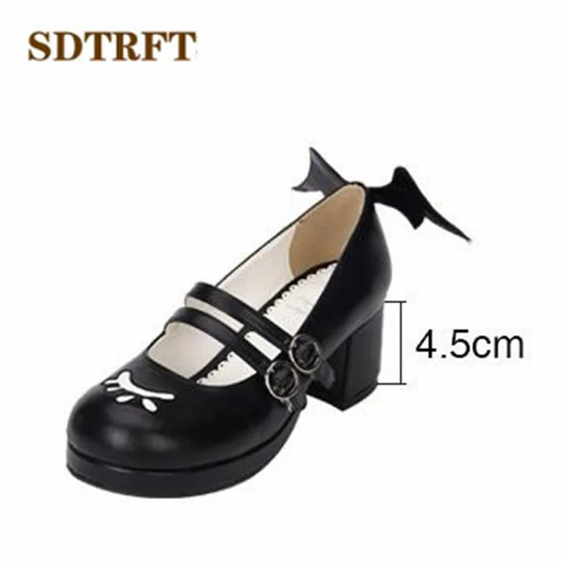 SDTRFTБольшие размеры 34-44, весенне-осенние милые туфли Лолиты на Высоком толстом каблуке женские черно-белые туфли-лодочки для косплея с крыльями демона sapato feminino