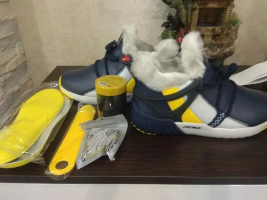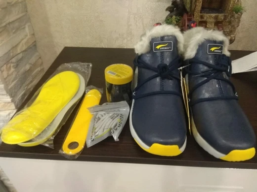 Отличные зимние кроссовки, только подошва на льду скользит. Продавец положил подарки: носки, запасные шнурки, стельки и обувной рожок.