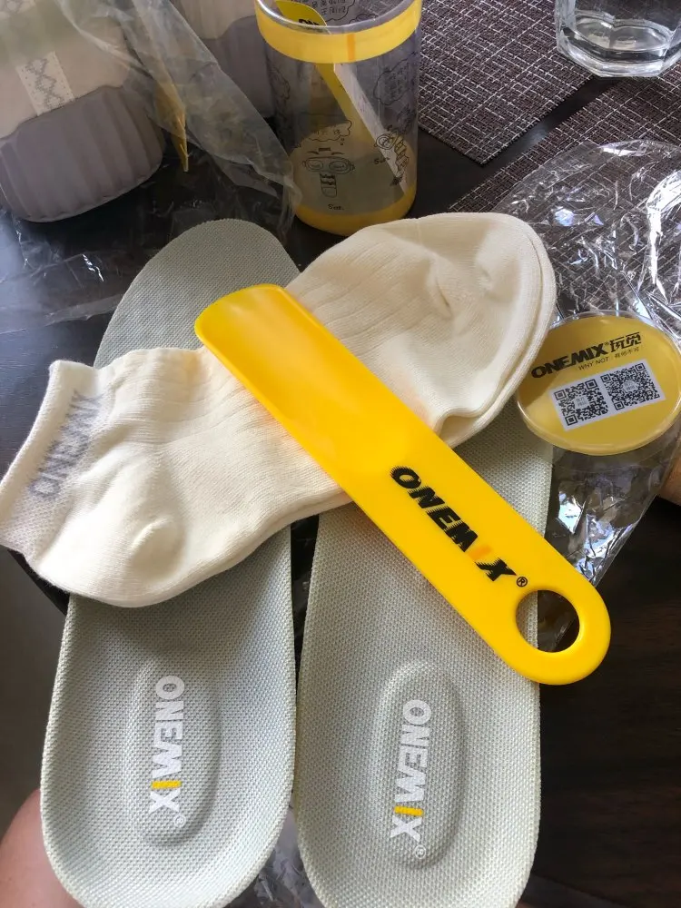 Запах есть небольшой. Очень мягкие. Кажутся на ноге грубоваты. Не скользят. В описании к товару набор шнурков, стельки и ложечка. Мне пришли только кроссовки и ложечка