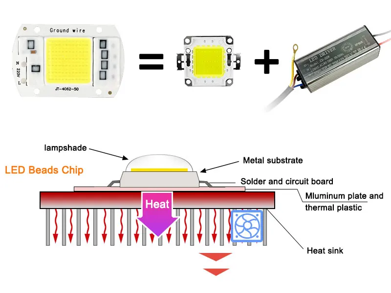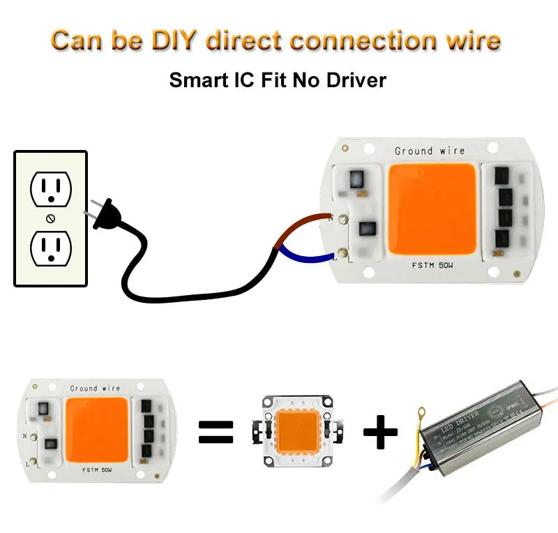 COB светодиодный чип 10 Вт, 20 Вт, 30 Вт, 50 Вт, лампа COB в, IP65, умный Драйвер IC, Холодныйтеплый белый Светодиодный прожектор, прожектор