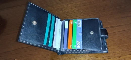 Товар соответствует описанию на сайте и пришёл в кратчайшие сроки в Украину через службу Новой Почты. В принципе, кошелёк неплохой, задумка такой формы модели хорошая. Но, некоторые карточки помещаются с большим трудом. За это и снята звезда. Упакован был хорошо.