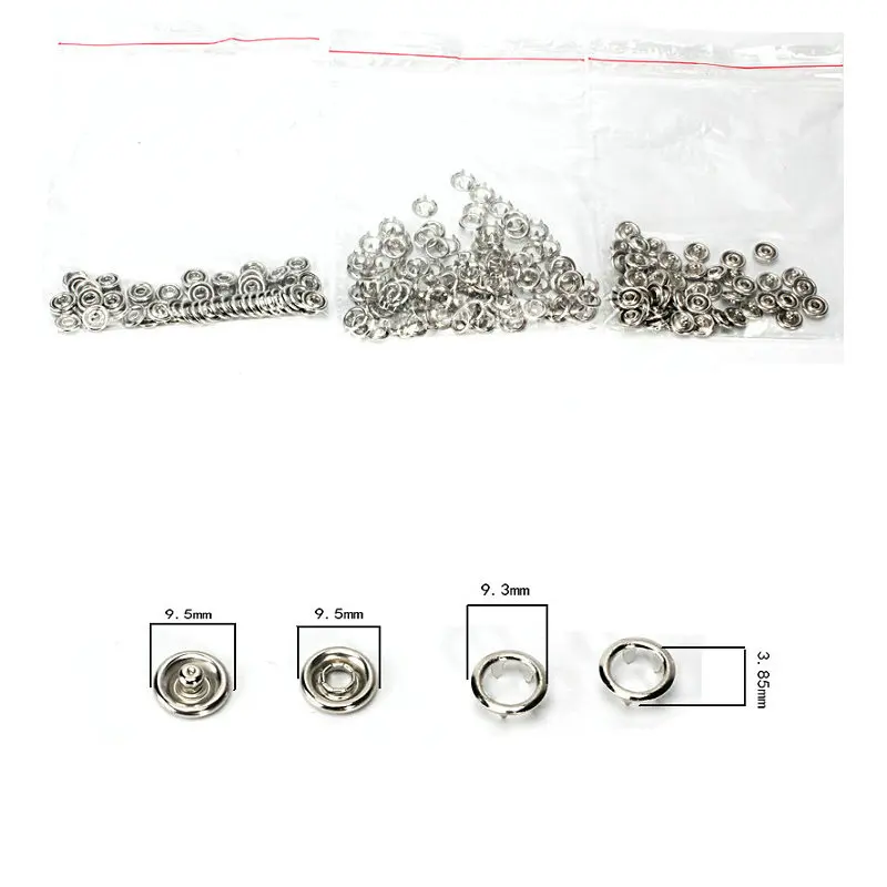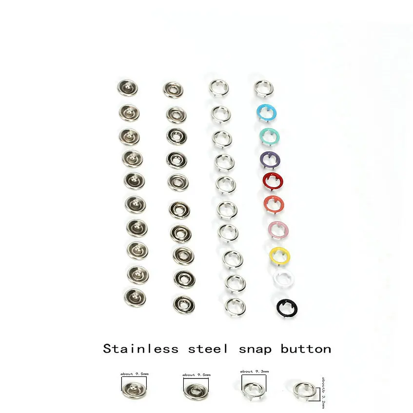 Металлические пуговицы JYMISS из нержавеющей стали, серебристого цвета, без шитья, с открытым кольцом, 9,5 мм, 50 комплектов