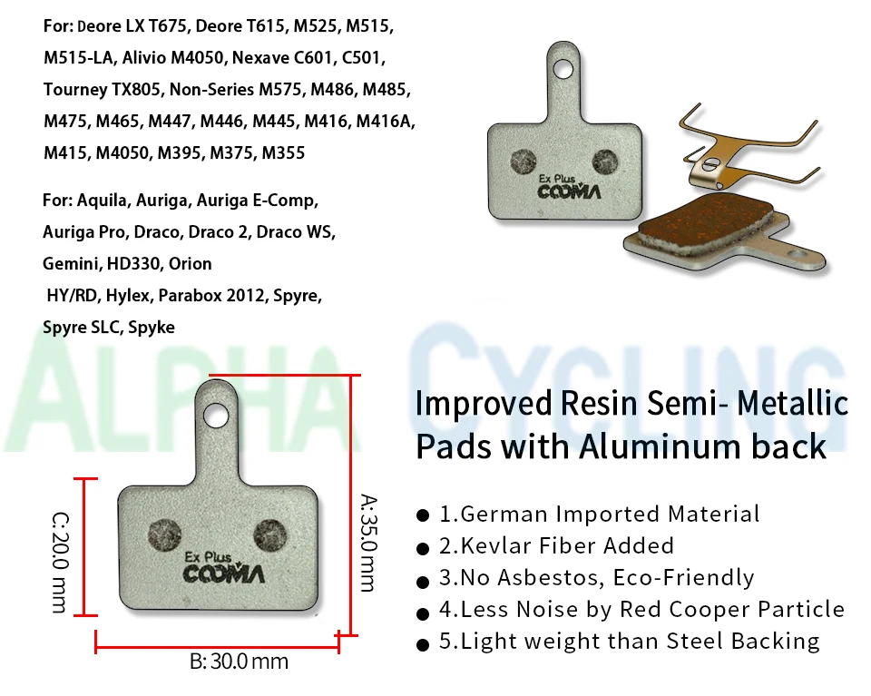 Велосипедные дисковые Тормозные колодки для DEORE, DEORE LX, ALIVIO, ACERA, NEXAVE, TOURNEY