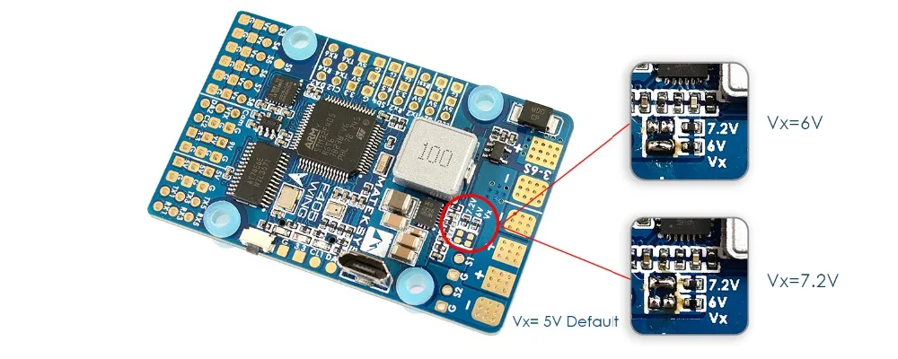 Регулируемое напряжение, 5 В по умолчанию, 6 в или 7,2 в через перемычку