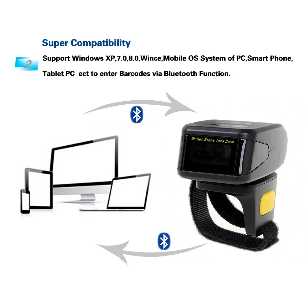 Bluetooth-кольцевой 2D сканер-это удобный и простой в использовании инструмент производительности для всех мобильных операторов, которым регулярно требуется Сканирование штрих-кодов. Маленькое, легкое устройство держится на пальце, с модулем Bluetooth удобно носить на запястье. Используя наш процесс, сопряжение с любым ручным, носимым, стационарным или компьютерным креплением с поддержкой Bluetooth так же просто, как одно сканирование. После использования сканер MJ-R30 ring 2D надежно передает критические данные с расстояния до 30 футов. Операторы получают непревзойденную свободу передвижения для выполнения задач по считыванию штрих-кодов быстро, безопасно и комфортно-все это позволяет сохранить обе руки свободными.