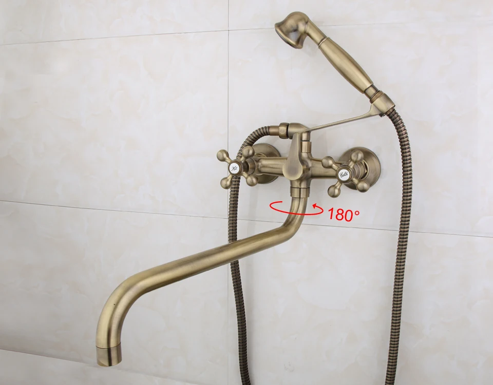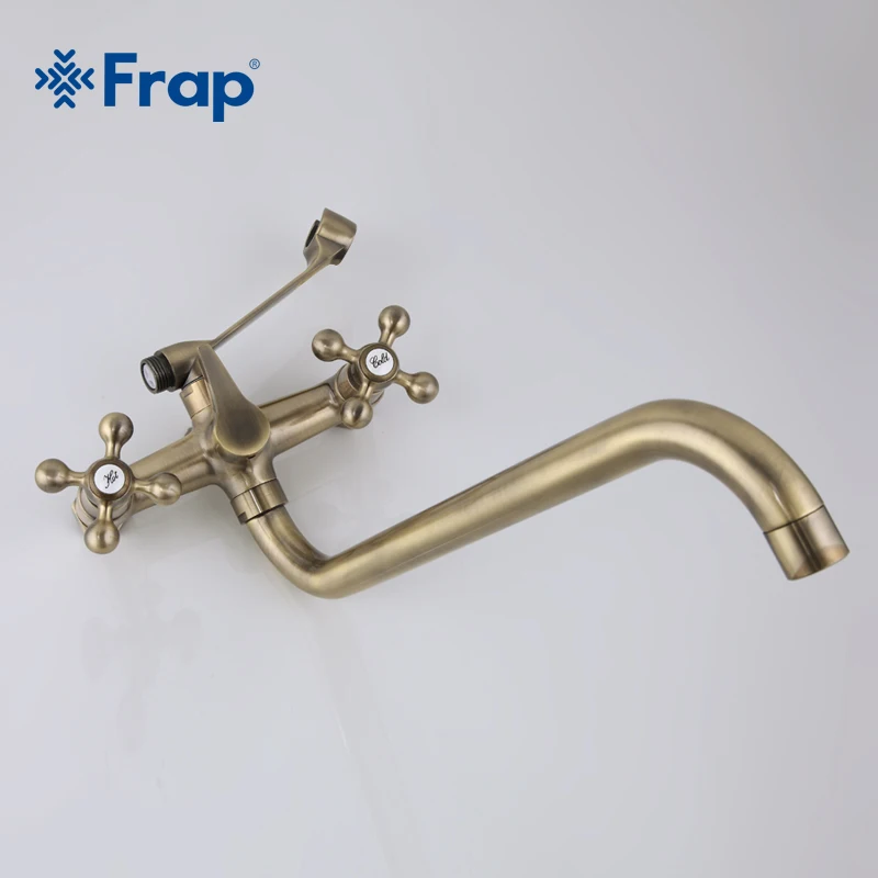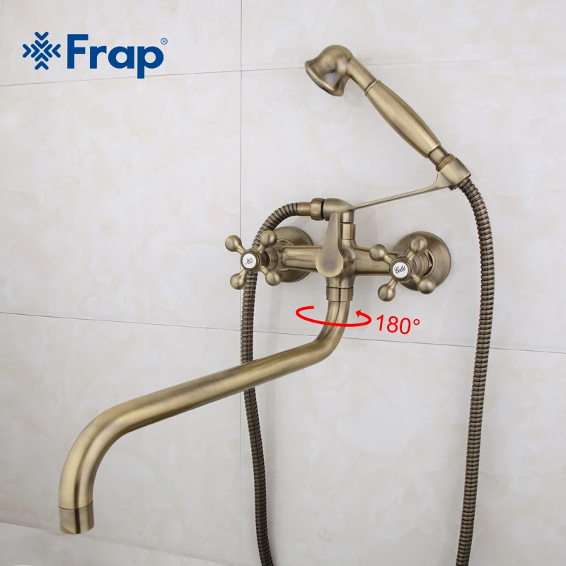 Смеситель для душа Frap, античная латунь, бронза, лейка и ручной душ, с двумя ручками, с двумя отверстиями, с носом 36 см, F2619-4