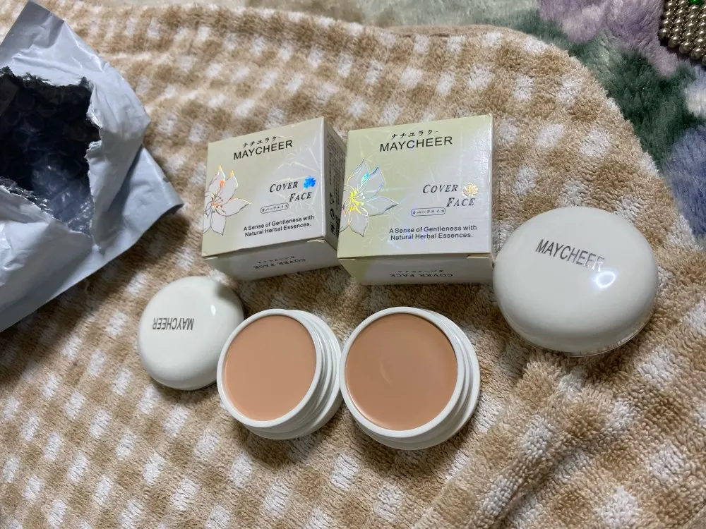 Посылка шла до Москвы 50 дней. У меня уже был такой консилер светлого оттенка, я им довольна, но цвет был мне светловат, и я решила купить более тёмного оттенка тоже. Тёмный мне подошёл больше, светлый оставлю для светлых зон лица и в качестве хайлайтера. Баночка большая, хватает надолго. Приятный пудровый запах.