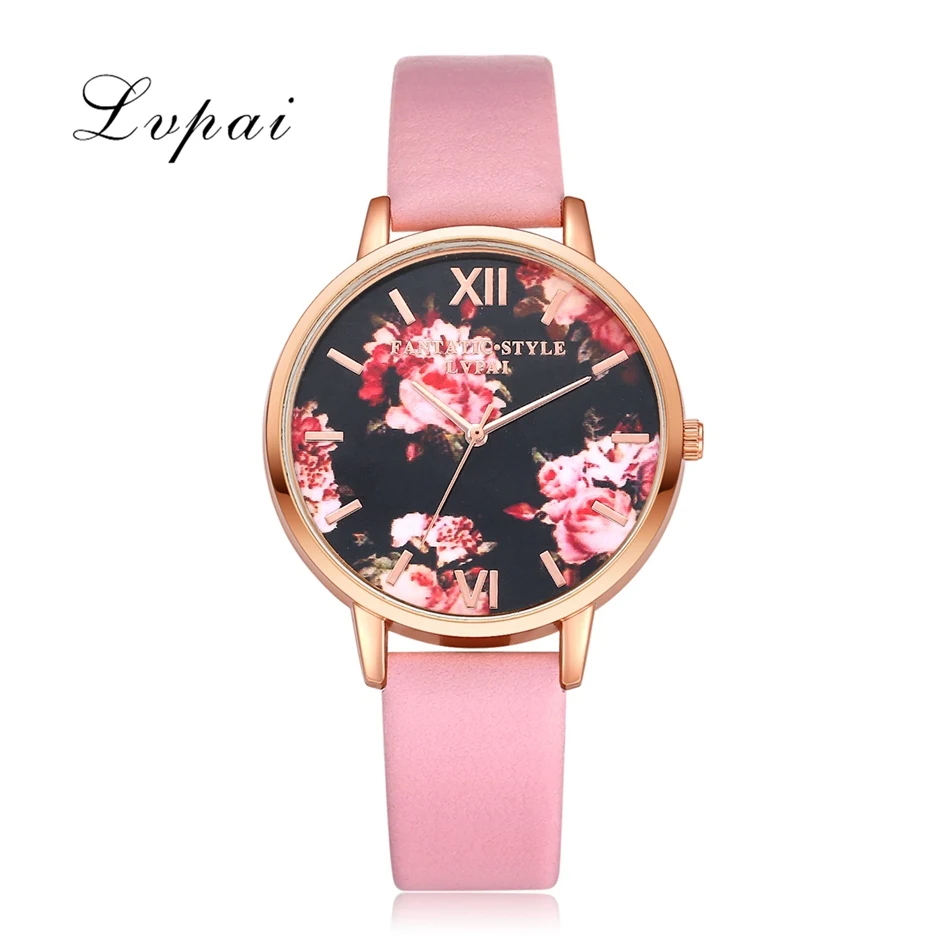 Горячие Продажи Lvpai Известный Бренд Розовое Золото Часы Цветы Кожа Модные Часы Женские Наручные Роскошные Кварцевые Часы Подарок Часы