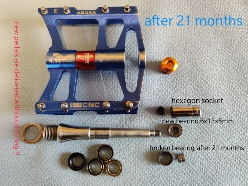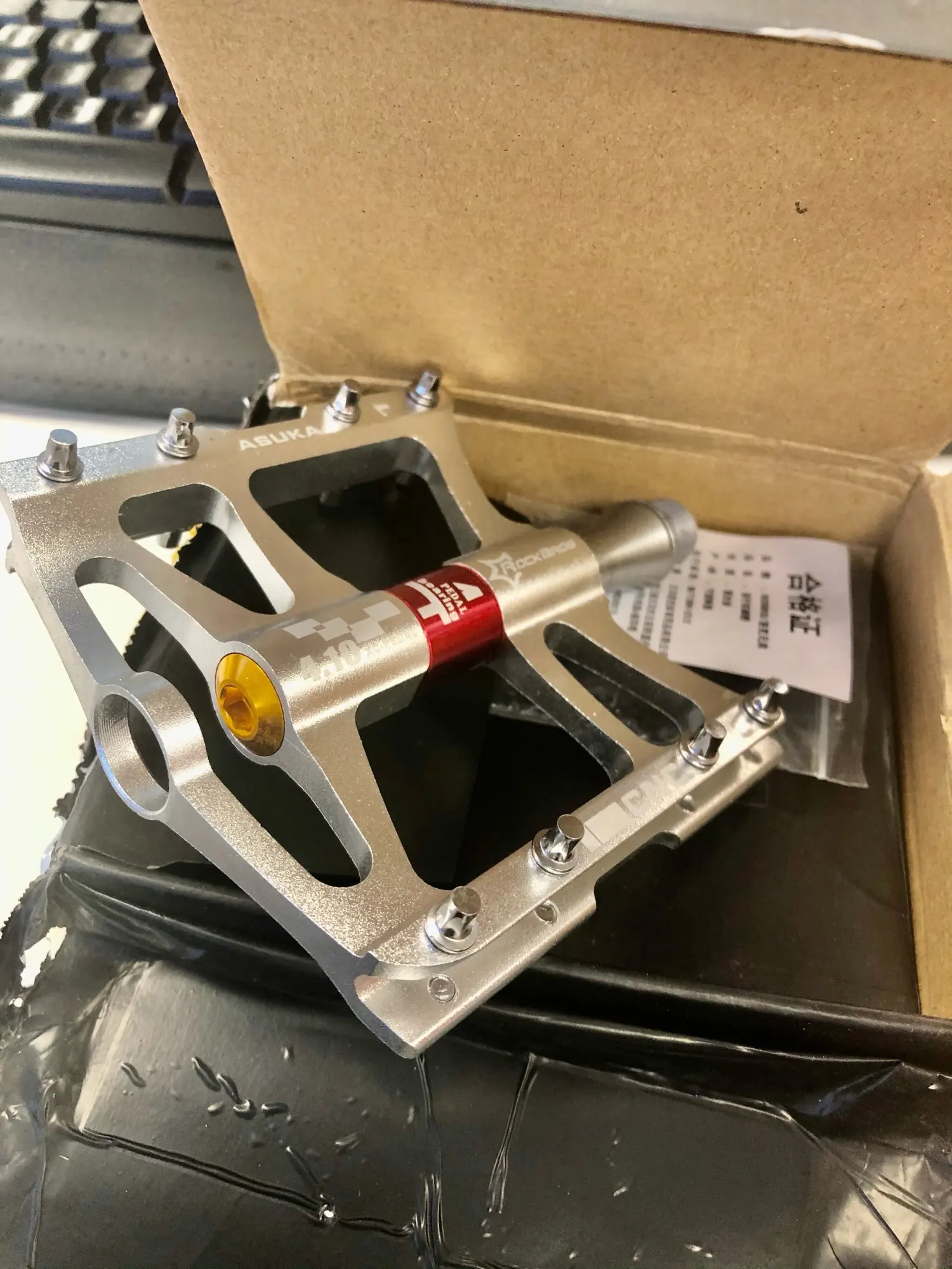 Педали отличные, заказал прозапас, но серебристые. Пользуюсь такими же чёрными около 2 лет, проблем с ними не было. Единственно чёрное анодирование выцвело на солнце на одной педали и стало коричневым. Теперь одна педаль чёрная, а вторая коричневая. Катал не жёстко с весом 72кг , но на них и написано xc-pedal. Продавец отличный, заказывал у него не в первый раз. Рекомендую.