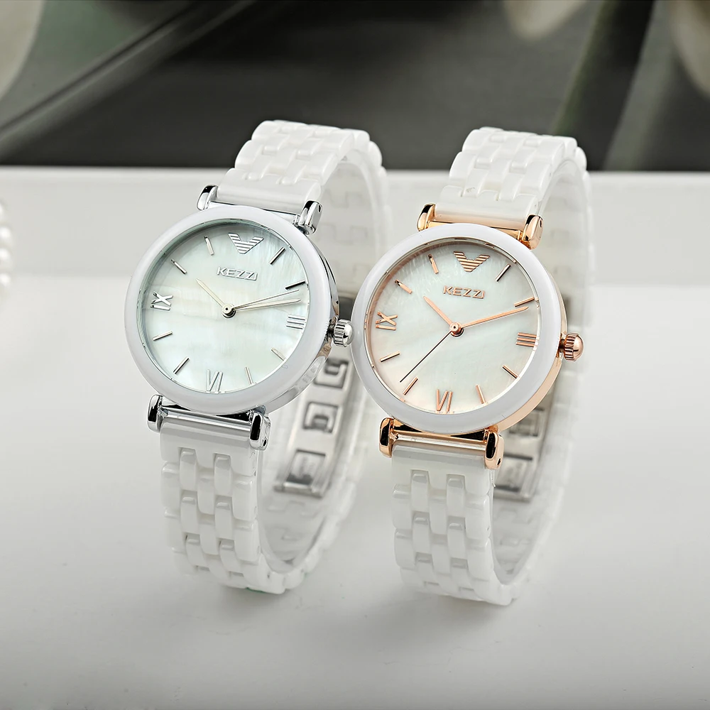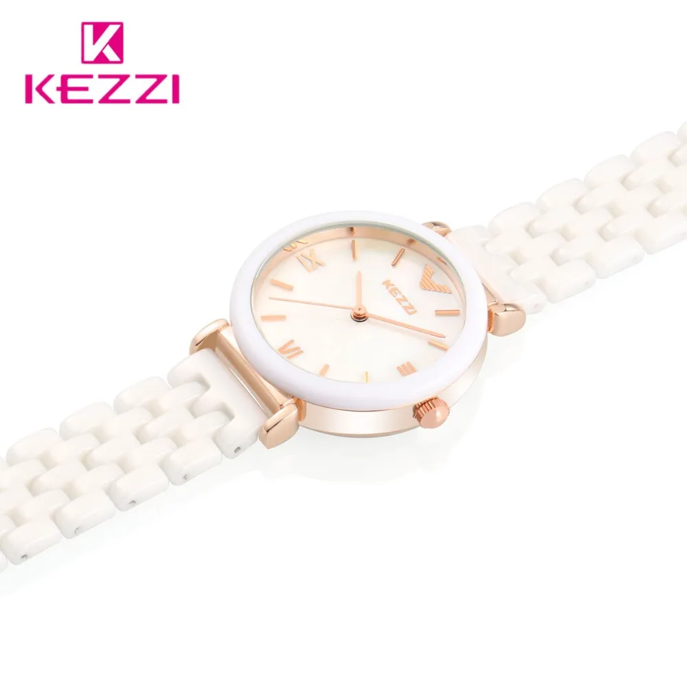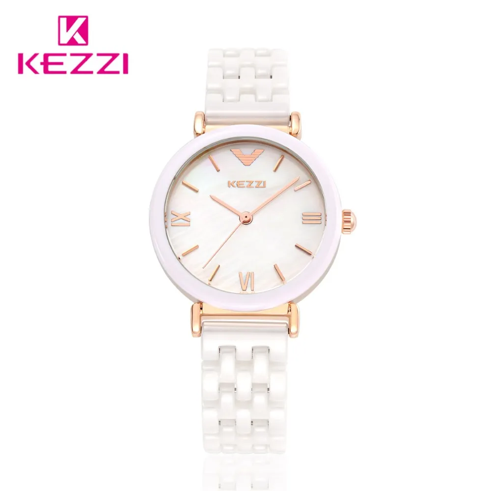 Женские кварцевые часы Kezzi, водонепроницаемые белые керамические часы, роскошные брендовые наручные часы под платье, женские часы