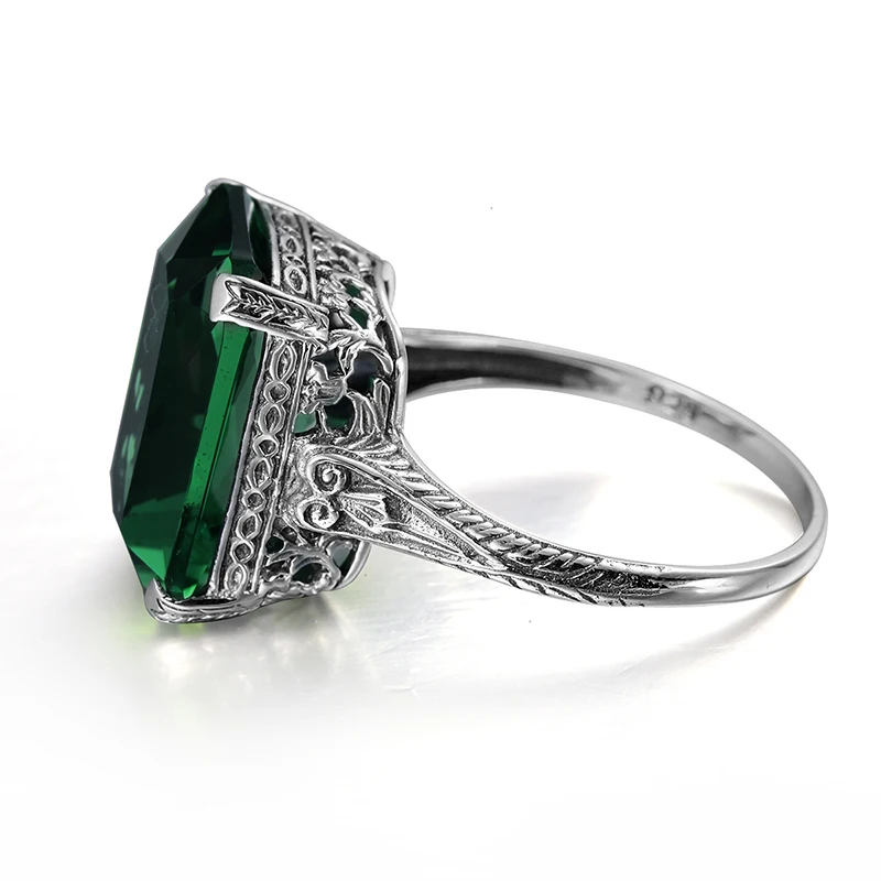 Металл: 100% 925 пробы сереброКамень: Синтетический изумрудРазмер камня: 12*15 ммЦвет камня: зеленыйЦвет металла: античное сереброСтиль: винтажныйШтамп: 925Вес: 4 г