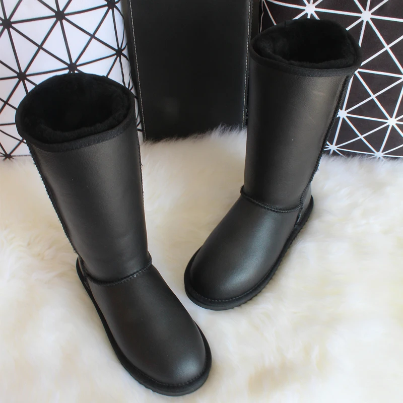 Женские зимние сапоги до колена из натуральной овечьей шерсти