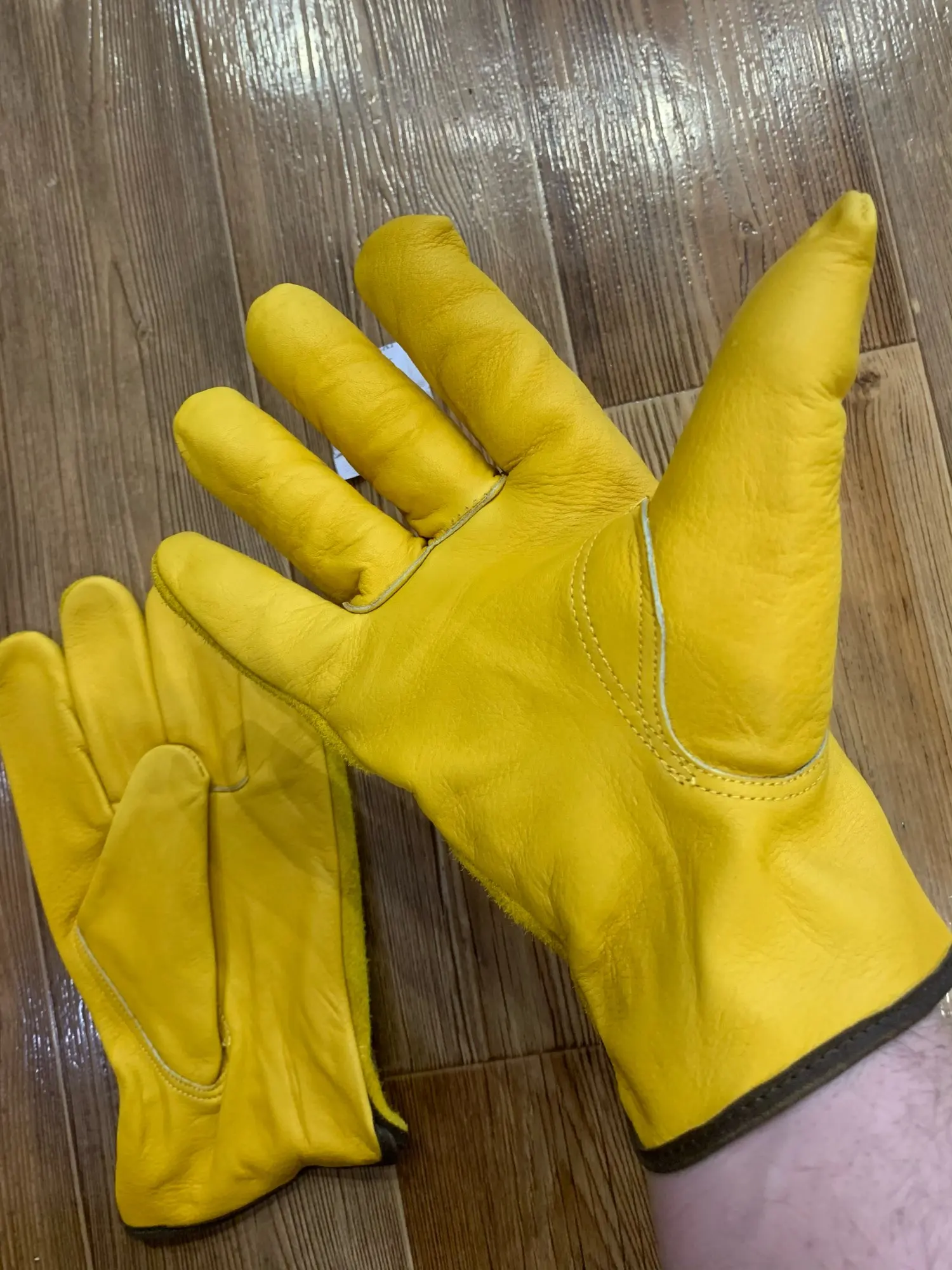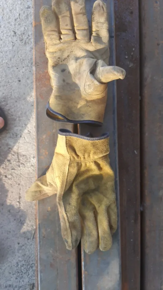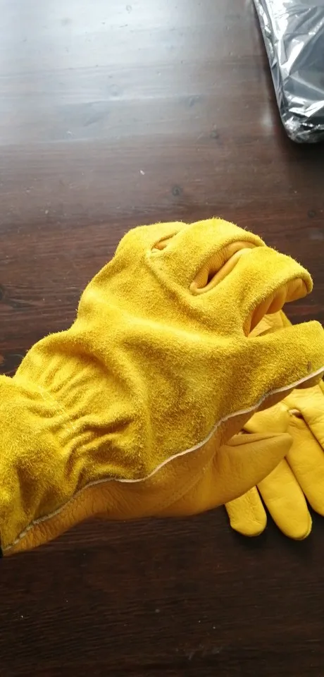 какие то они огромные в этот раз, у одной пары очень тонкая кожа на ладонях перчатки,хотя я просил из толстой кожи для работы с железом