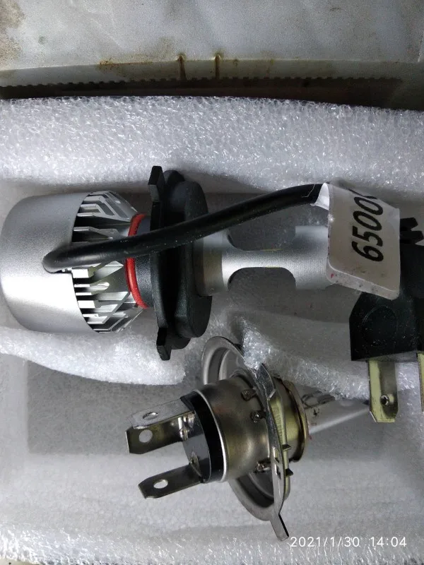 Упаковано было в коробку, внутри что-то вроде пенопласта, коробка была вся помятая, спасибо почте россии... Собрано вроде неплохо, светить светят. Заказывал с температурой 4300, на машину мазда 323f ba, на фото слева - LED лампа, справа галогеновая, кажется что одинаково, но LED все же светит более белым светом, по яркости на бампере впередистоящей машине казалось одинаковым, однако в дождь думаю будет хуже светить. Всё в общем-то круто, НО, устанавливать не стал на машину - крышка фары не закрывается из-за очень большого элемента охлаждения, тупо не хватает глубины... Или что-то колхозить или не ставить, попробую разобраться с ними весной когда будет тепло.