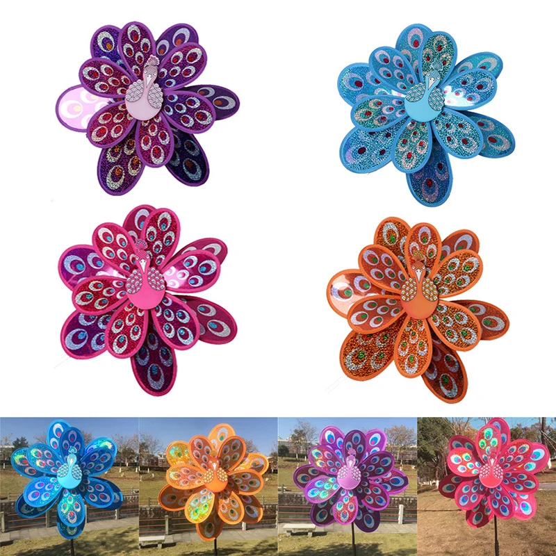 Двухслойный павлиний лазер с блестками ветряная мельница красочный ветряной Спиннер Декор для дома и сада Двор детская игрушка
