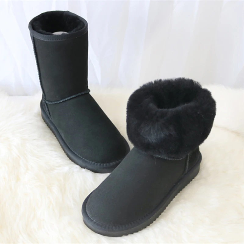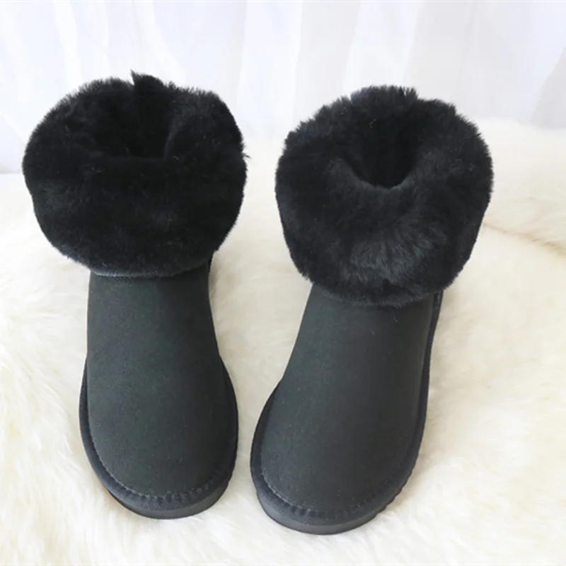 Женские классические зимние сапоги из натуральной овечьей шерсти, зимние сапоги из овечьей шерсти, женская зимняя обувь на плоской подошве