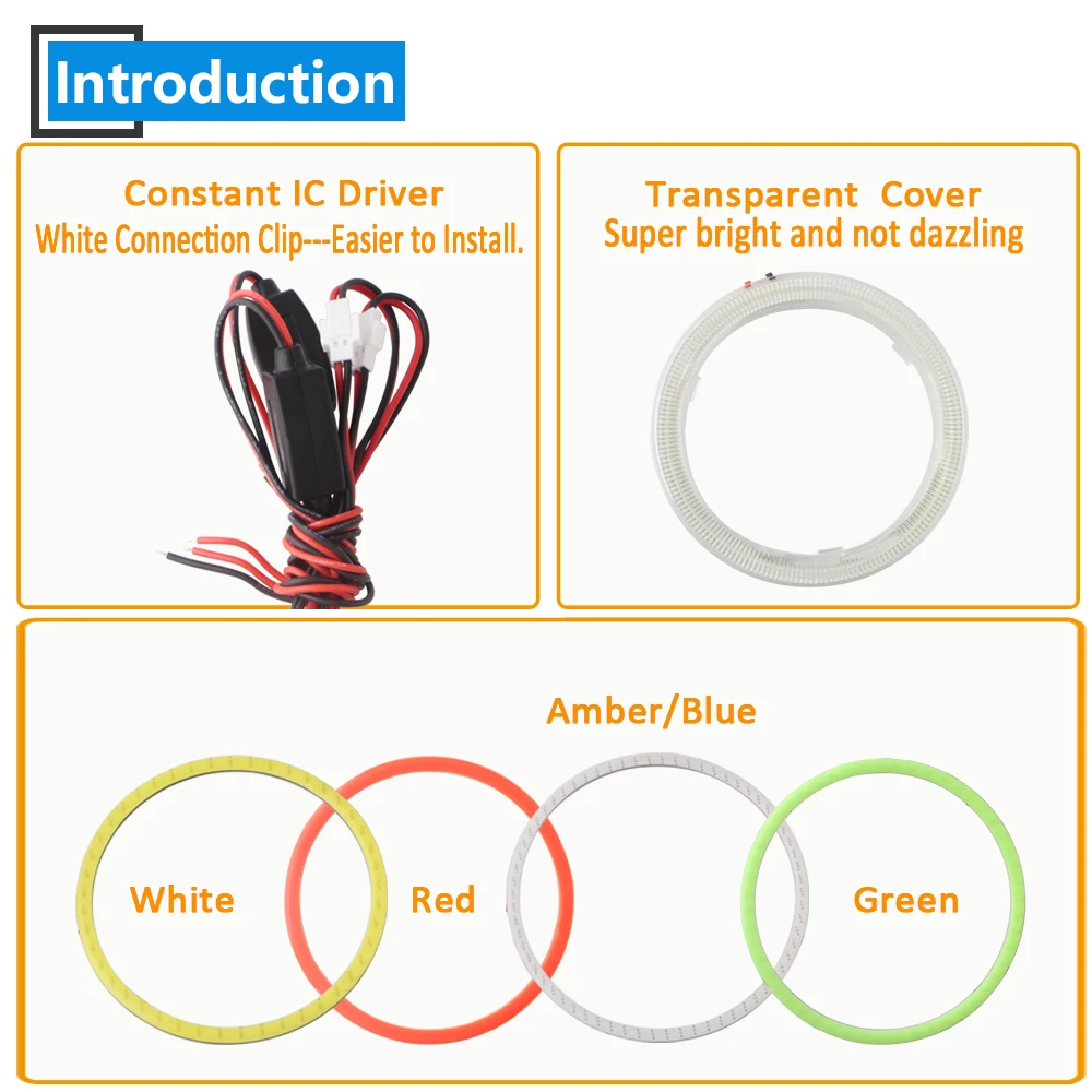 2 шт. 70 мм ангельские глазки 12 В COB 45 SMD светодиодные гало кол...