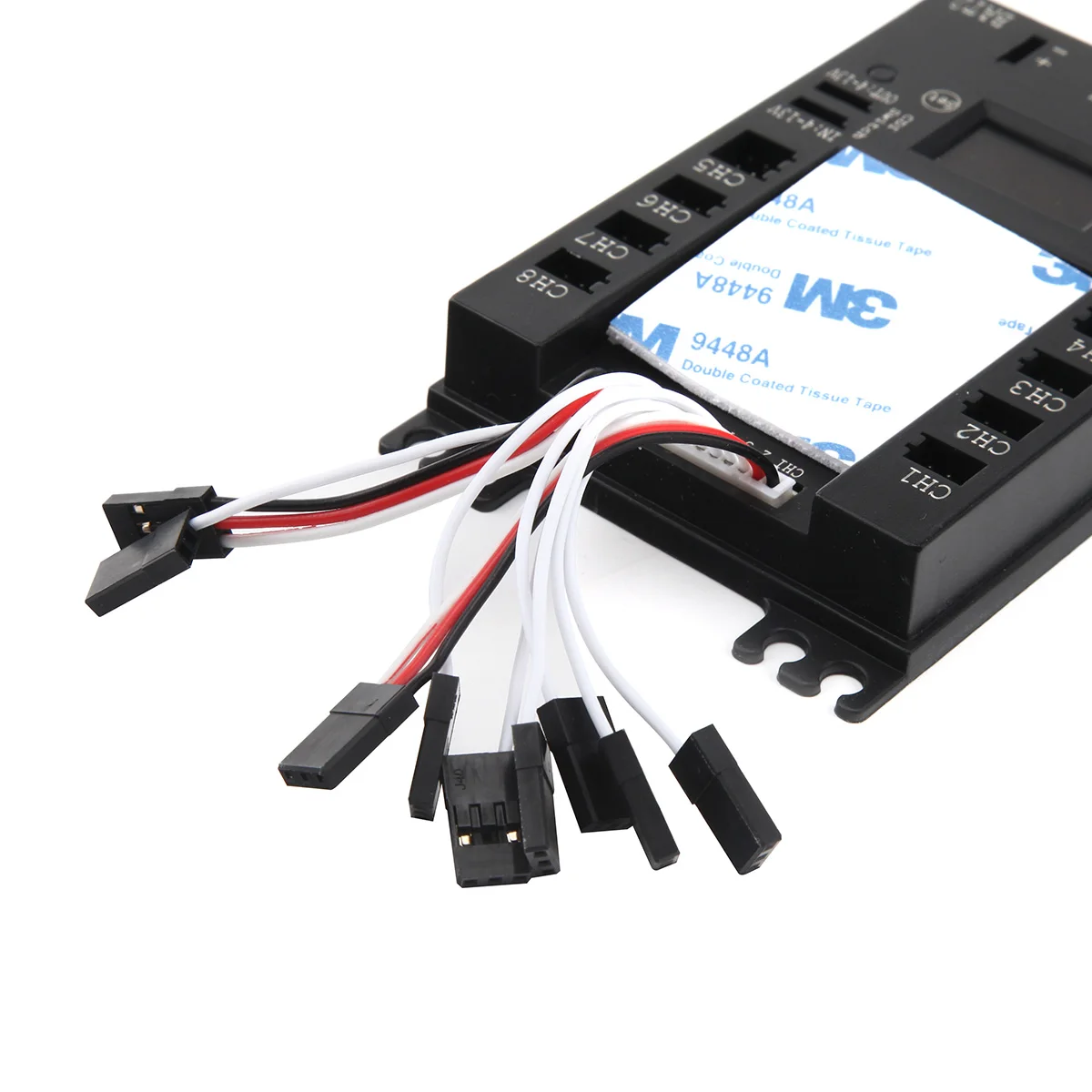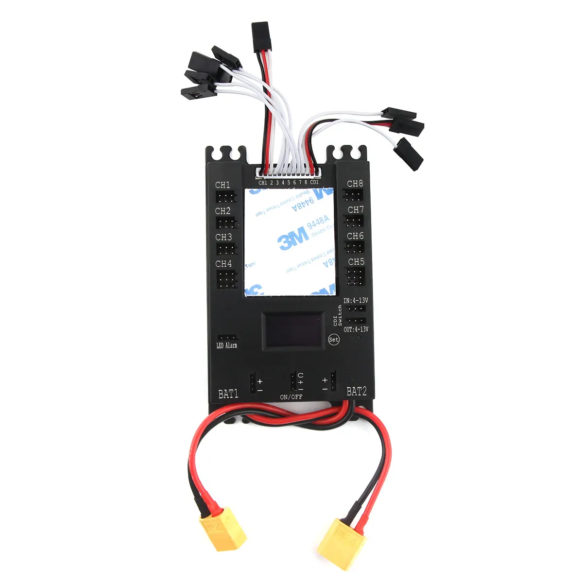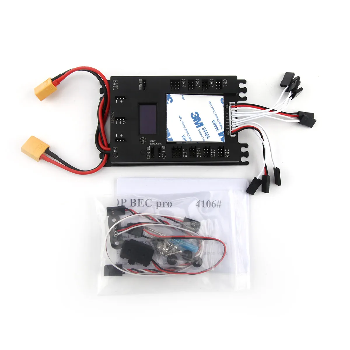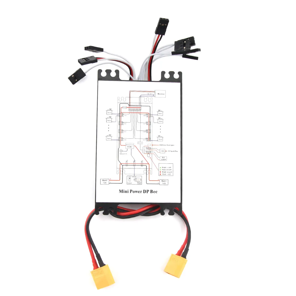 Особенности продукта:Двойной вход питания для улучшения стабильности источника питания, который может эффективно избежать аварии, вызванной плохим контактом одного блока батарей питания.По сравнению с традиционным механическим переключателем интегрированный электронный переключатель имеет более высокую безопасность и стабильность.Переключатель отображения входного/выходного напряженияДевять каналов для ввода и шестнадцать каналов для вывода. (каждый вход канала с двумя выходами каналов), один канал CDI удаленный переключатель flameout.Интегрированный пульт дистанционного управления CDI, что делает полет более безопаснымНезависимый блок питания CDI. Мощность приемника полностью отделяется от мощности CDI, поэтому вы не должны беспокоиться о том, что CDI вызывает высокочастотный сигнал будет мешать приемнику.Интегрированный 30ABEC ( MXA: 40A) с помощью линейного регулятора делает мощность чистой, что может обеспечить достаточный ток для привода.4,8-9,7 в выходное напряжение, для того чтобы приспособиться к различные высокого и низкого напряжения привод.Независимый линейный регулятор 5 В, который обеспечивает отдельный чистый рабочий источник питания для приемника.Пять светодиодов отображают рабочее состояние распределительной платы.Специальное место предназначено для приемника, чтобы избежать случайного повреждения от взрыва в приемнике.Дополнительный измеритель напряжения распределительной платы может отображать Входное/выходное напряжение в реальном времениПараметры технологии:Рабочее напряжение: 6-13 вL рулевого управления по току, напряжению: 0-20A (макс. 30A) , 4,8 Регулировка громкости 9 .7 V-слайдеры (фабричное производство напряжение 5,2 V)Вес l: 80 гОбъем l: 116 мм (длина) * 88 мм (ширина) * 13 мм (высота)Рабочая температура: от-20 до 85 градусов по Цельсию