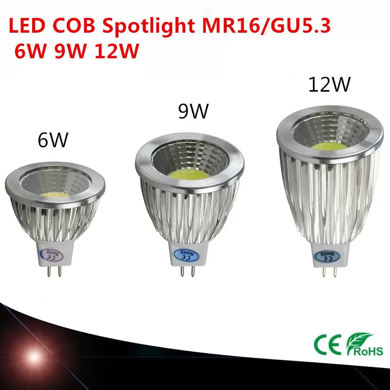 Сверхъяркая диммируемая светодиодная COB-лампа, 6 Вт, 9 Вт, 12 Вт, 85-265 в, GU5.3 MR16, светодиодные лампы, прожектор, COB Светодиодная лампа с теплымчистымхолодным белым светом