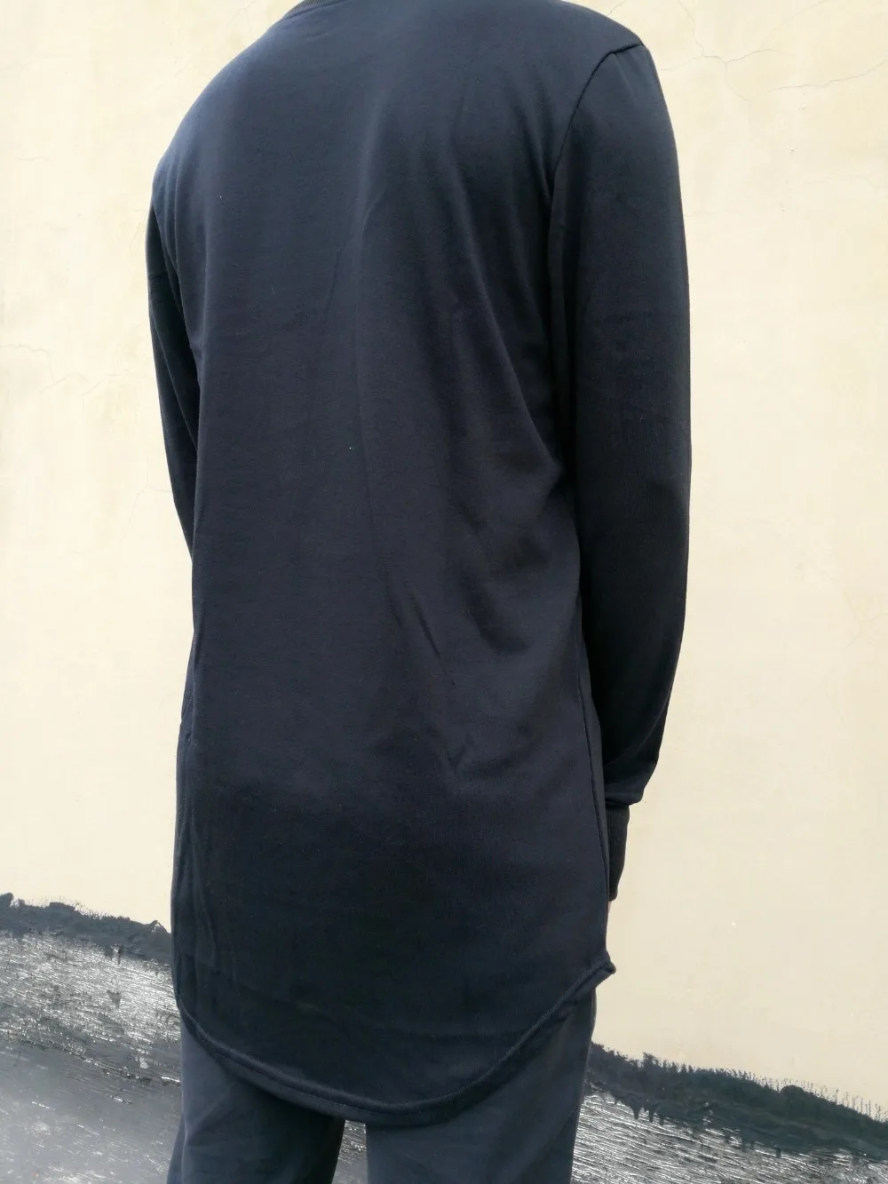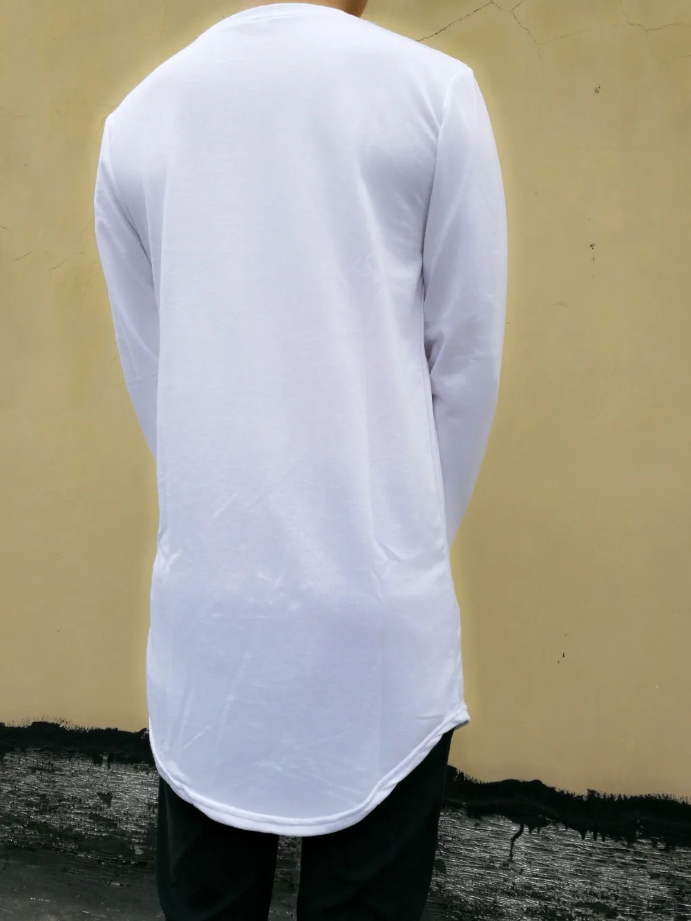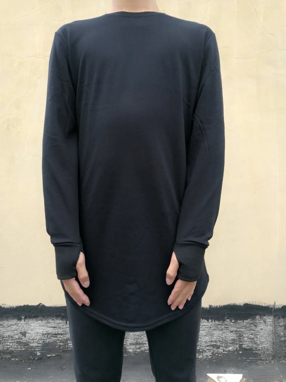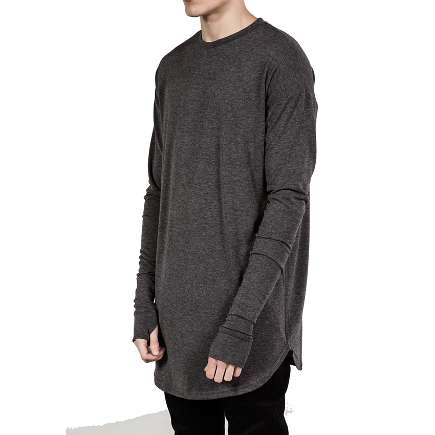 Новое поступление, мужские однотонные футболки с вырезом для большого пальца, мужские футболки в стиле хип-хоп, с длинным рукавом и подолом, хлопковая повседневная одежда