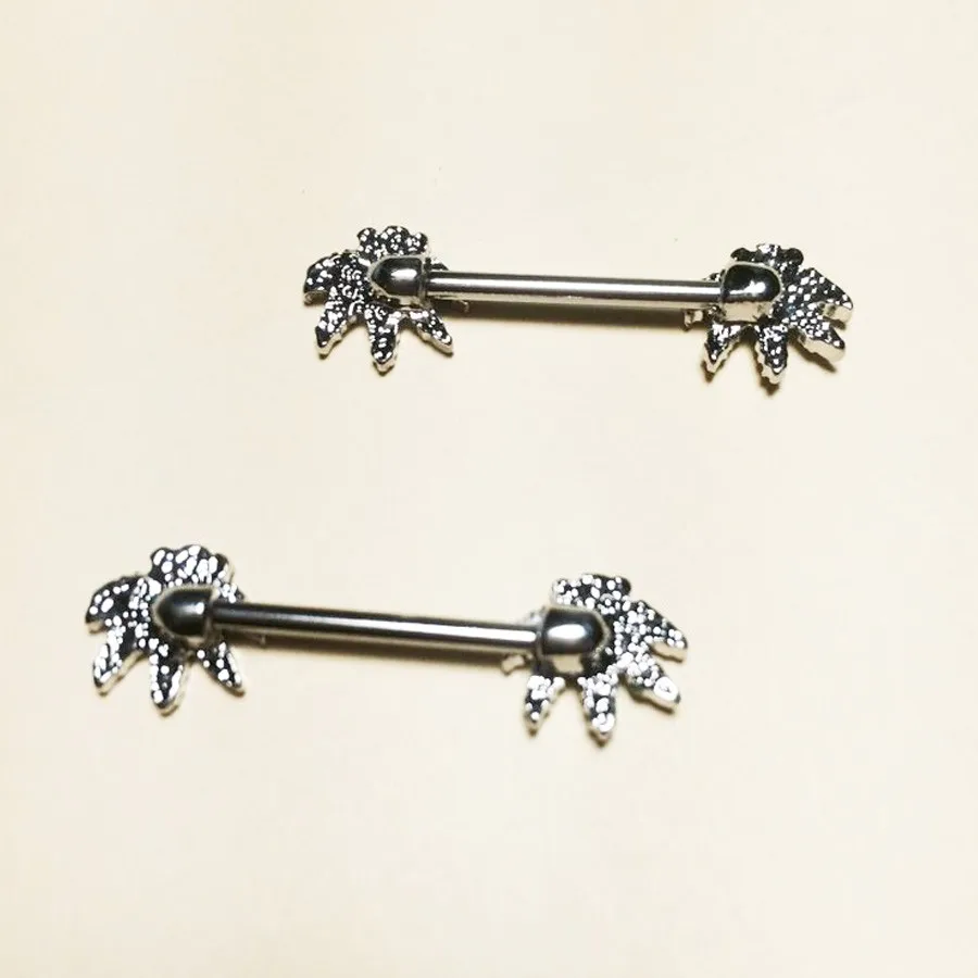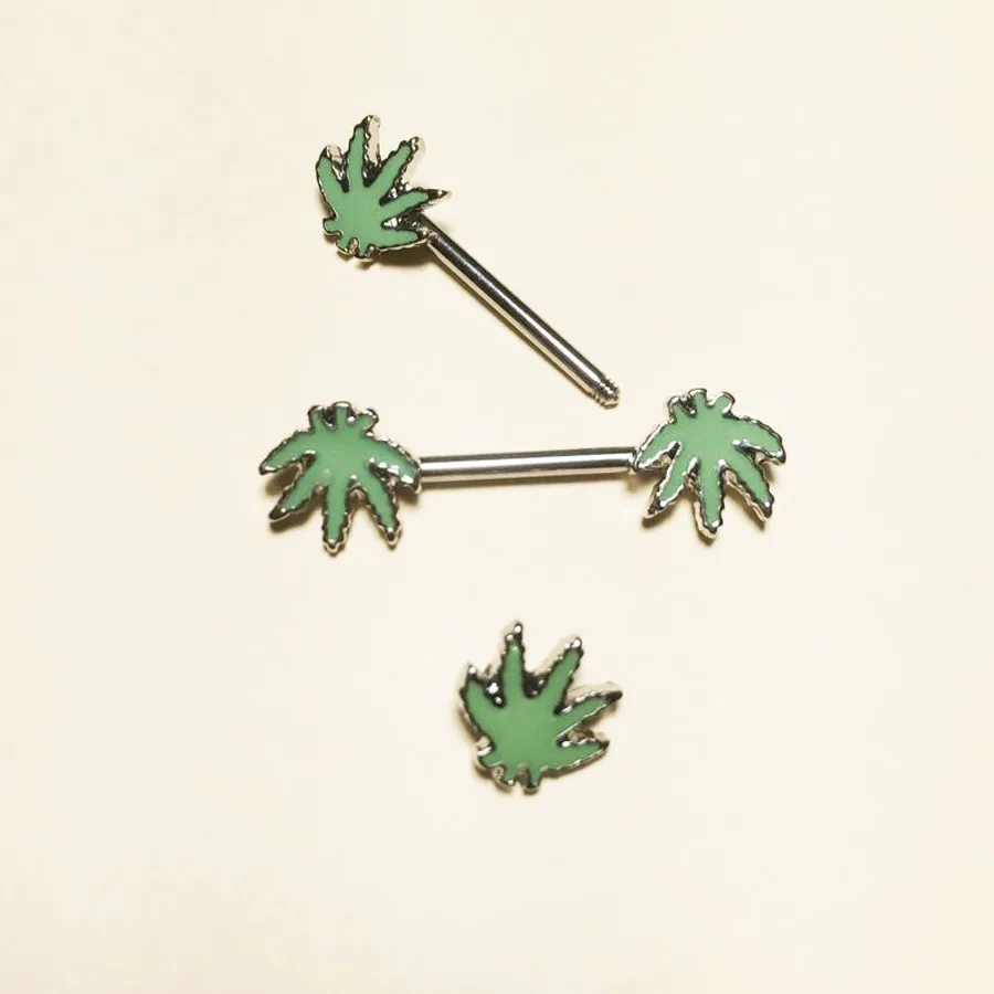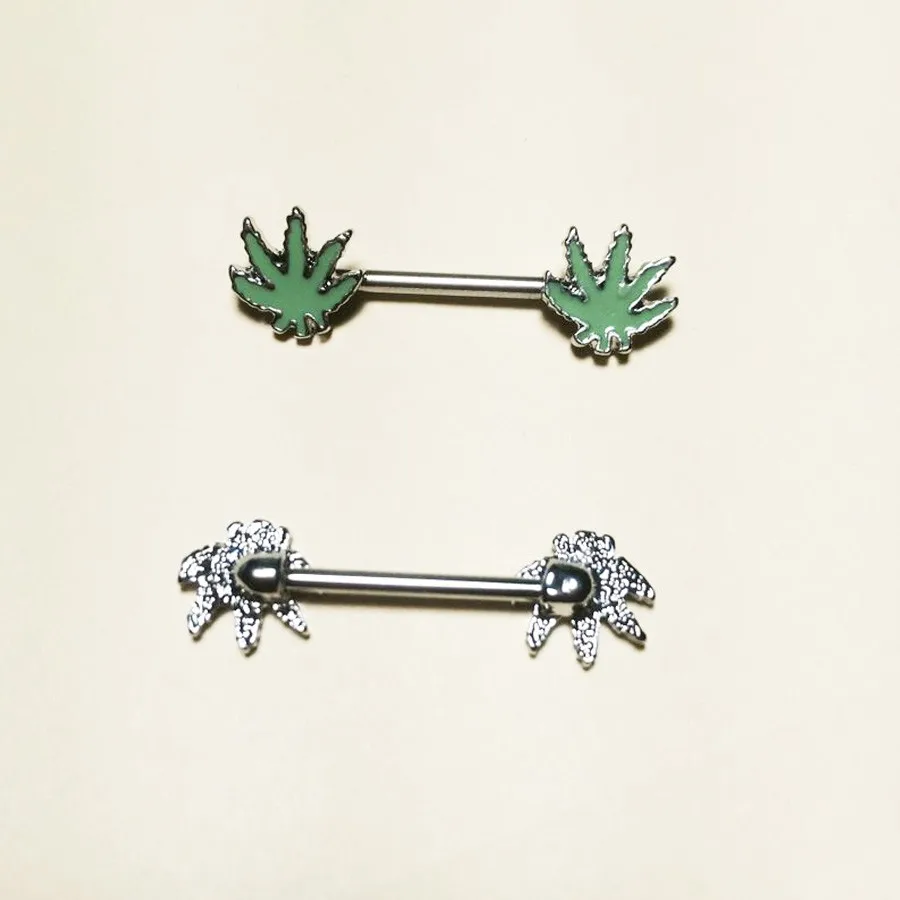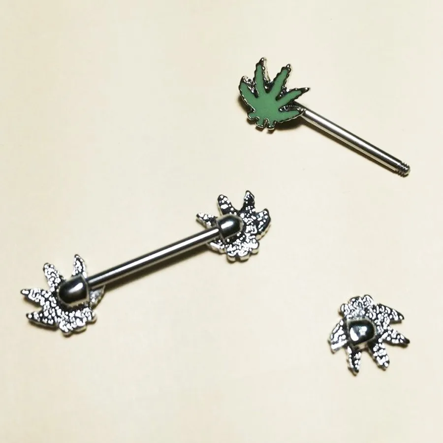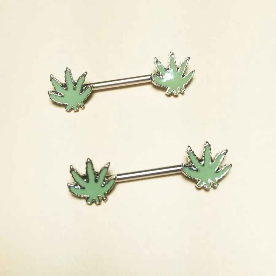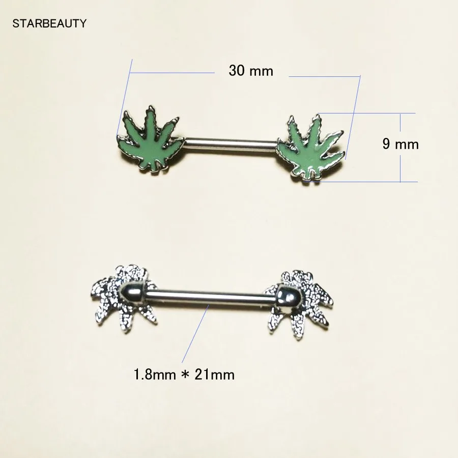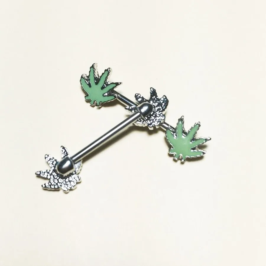 1 шт./заказ, пирсинг в виде зеленого кленового листа для сосков, ниппельные кольца ювелирные изделия креативные женские украшения для пирсинга тела в стиле панк