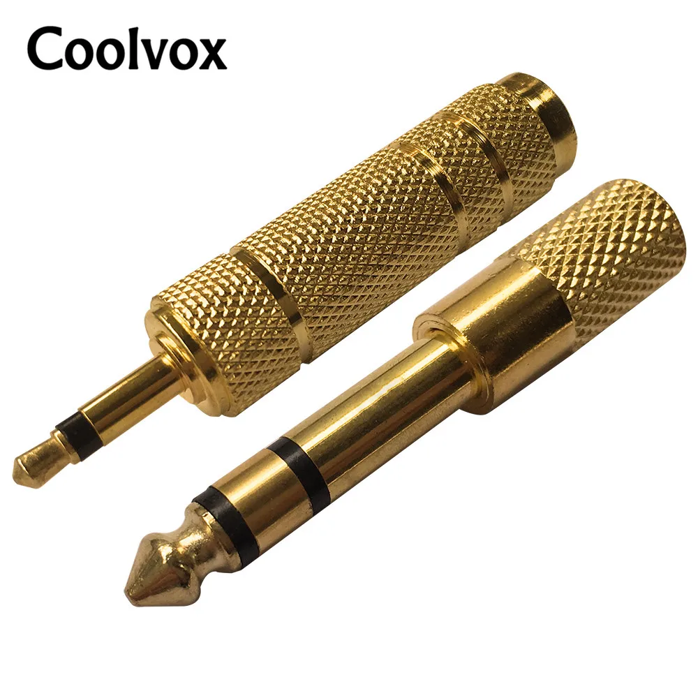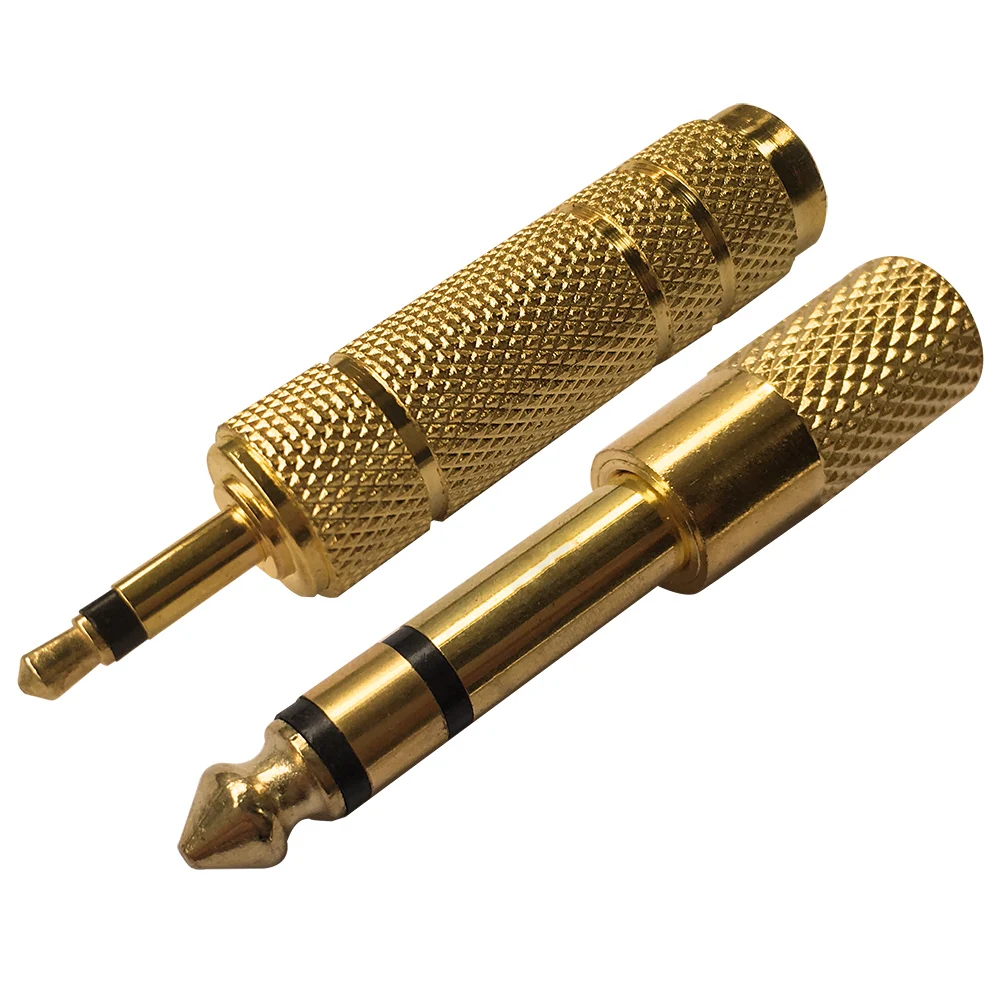 Позолоченный адаптер для наушников со штекером 14 дюйма (6,35 мм) до 18 дюйма (3,5 мм)