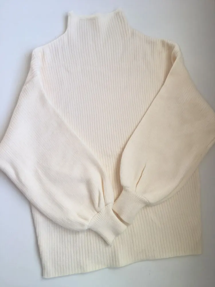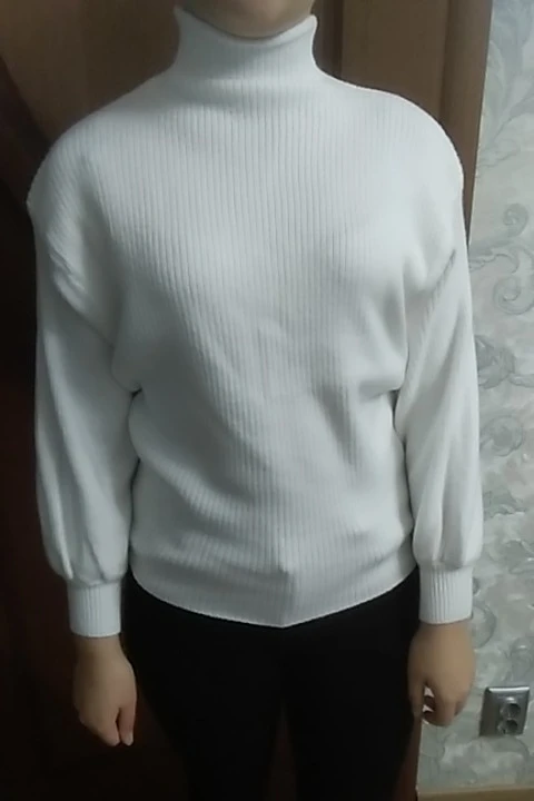 Очень нежный, мягкий свитер, цвет топленого молока. На размер 44 и рост 163 см сел идеально, на большие параметры будет мал. Не совсем понятно где перед и зад, т.к. обе стороны абсолютно одинаковы. На шее впереди из-за этого небольшая складка, но меня не смущает. Швы обработаны идеально, ниток лишних не было.