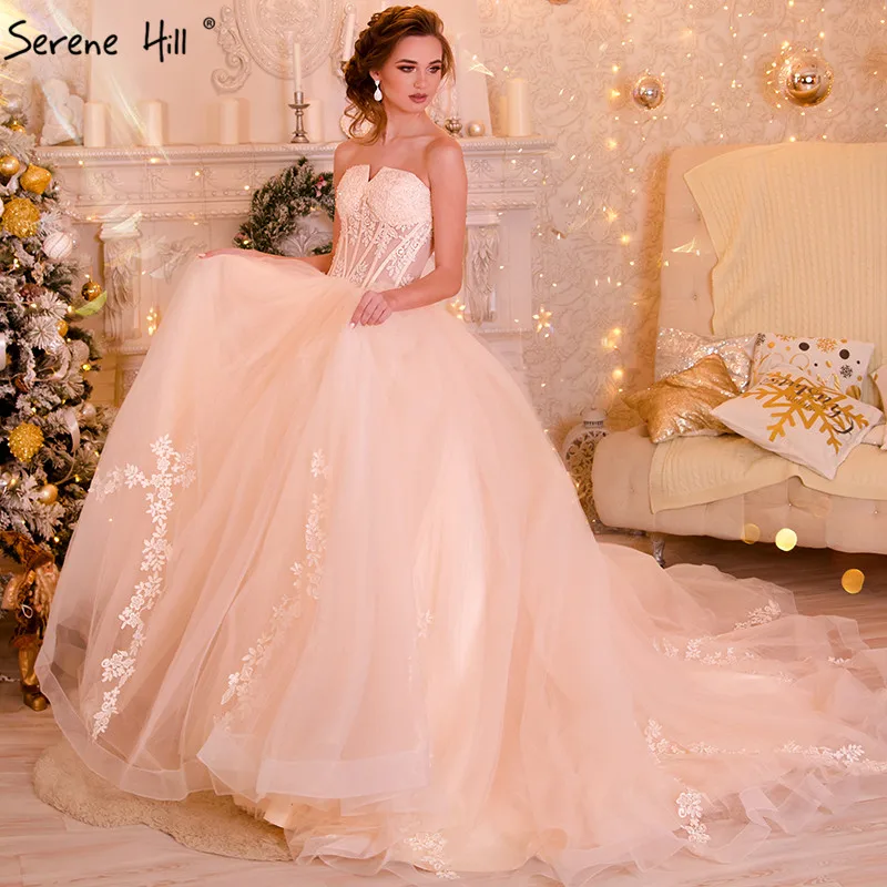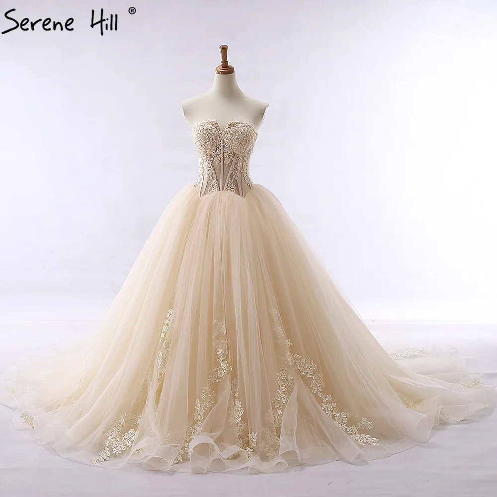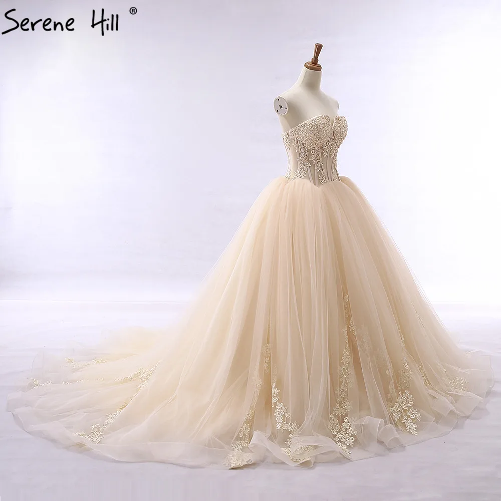 Новинка, свадебное кружевное бальное платье, свадебное платье с шлейфом, бисером, фатиновой юбкой, Милое Свадебное Платье 2021, настоящая фотография, Serene Hill HA2057