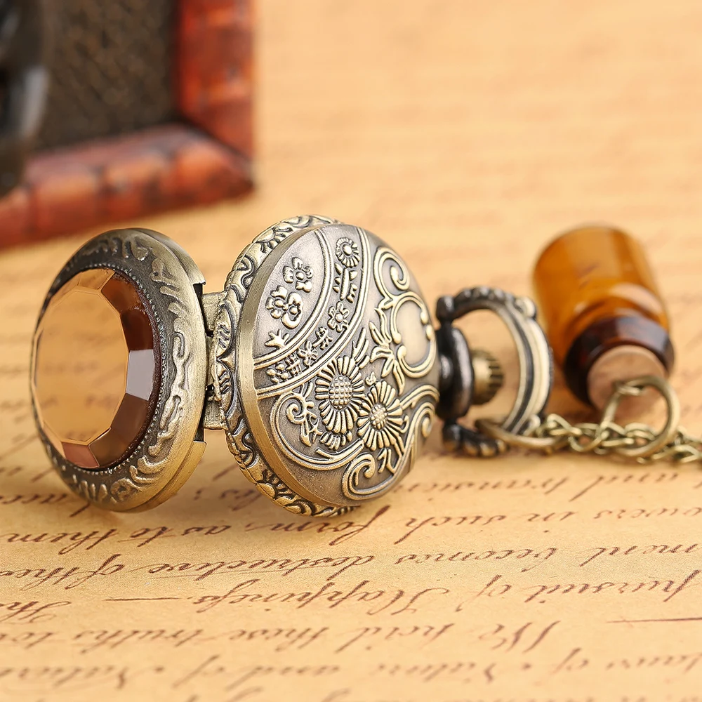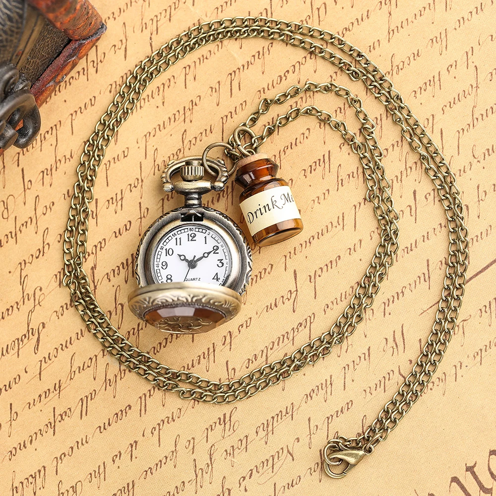 Модные карманные часы ретро Винтаж Темно-коричневое стекло напиток Me бутылка мини ожерелье цепь милый горячий подарок медная Мужская бронза