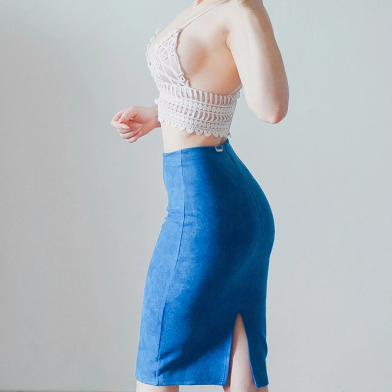 Женская замшевая юбка-карандаш средней длины, с высокой талией