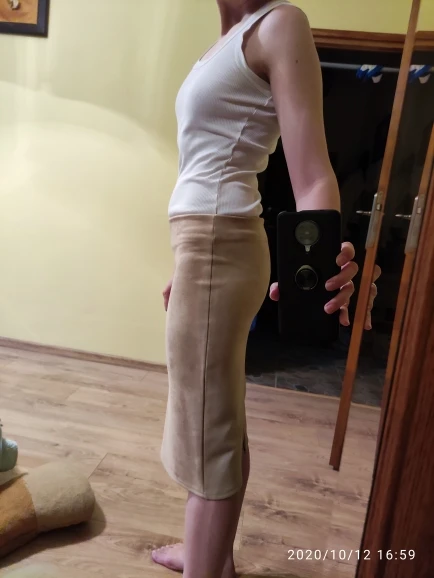 заказ отправила 31.12.2020 получила юбку 16.01.2021. товар соответствует описанию, но мне кажетсч что это не замша а трикотаж под замшу, юбка без подклада и если вы не худенькая, то все неровности видны,хотя по размеру она подошла на мой 50 xxl, она тянется и по качеству видно что хорошая, цвет соответствует смотрится хорощо
